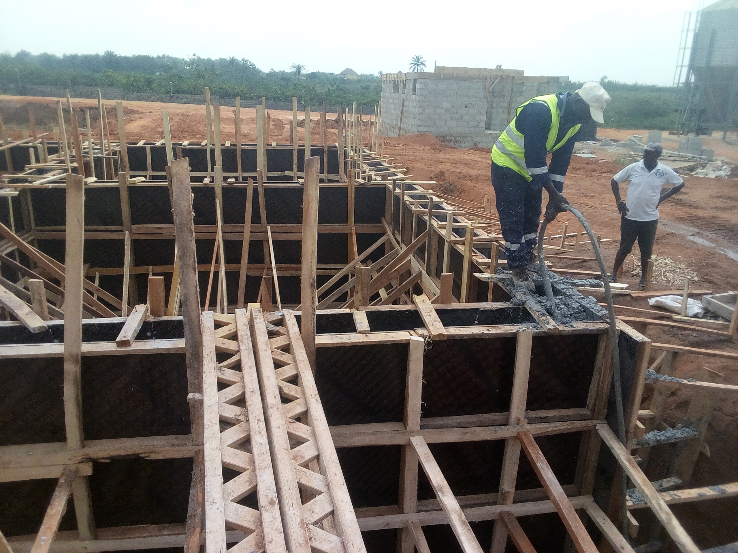 After mapping out, and clearing, leveling took place, casting of basement (floor) was done, setting out commence, boarding of the structure ontop of the basement was done the next day to get the exact structure of what's on the plan. After an eye look at the weather forecast, today was so bright that we had to move on with casting of an underground water tank.