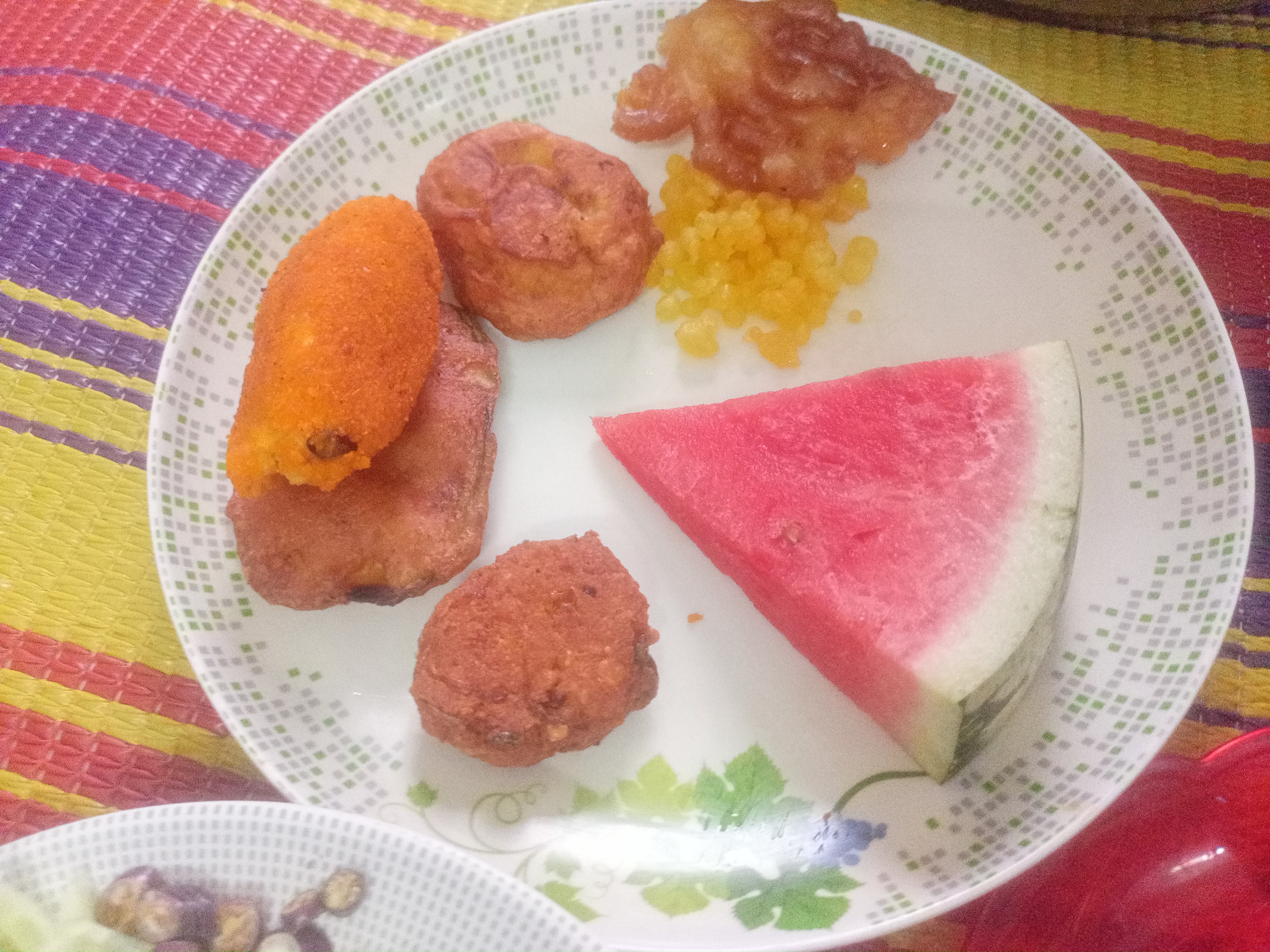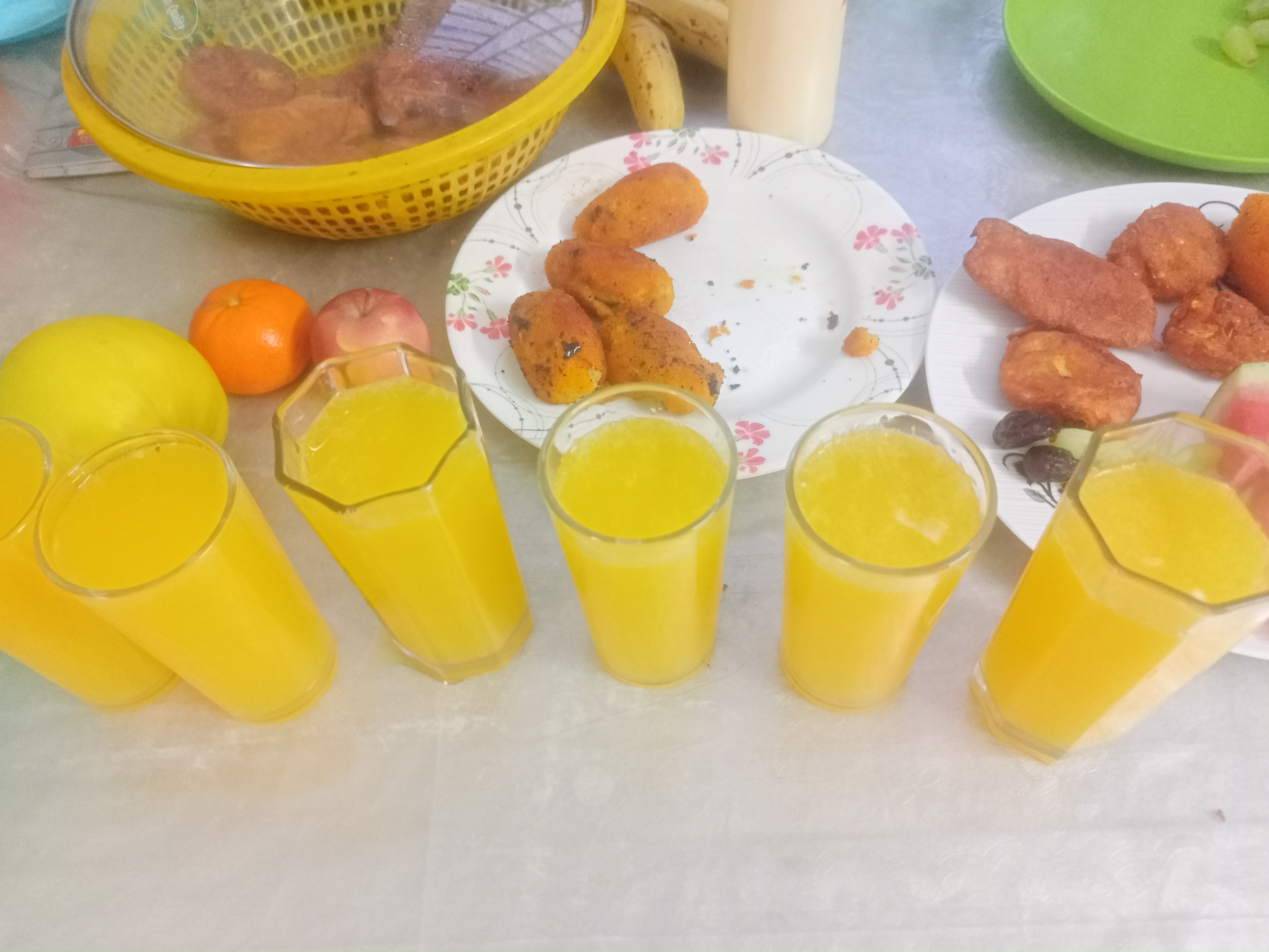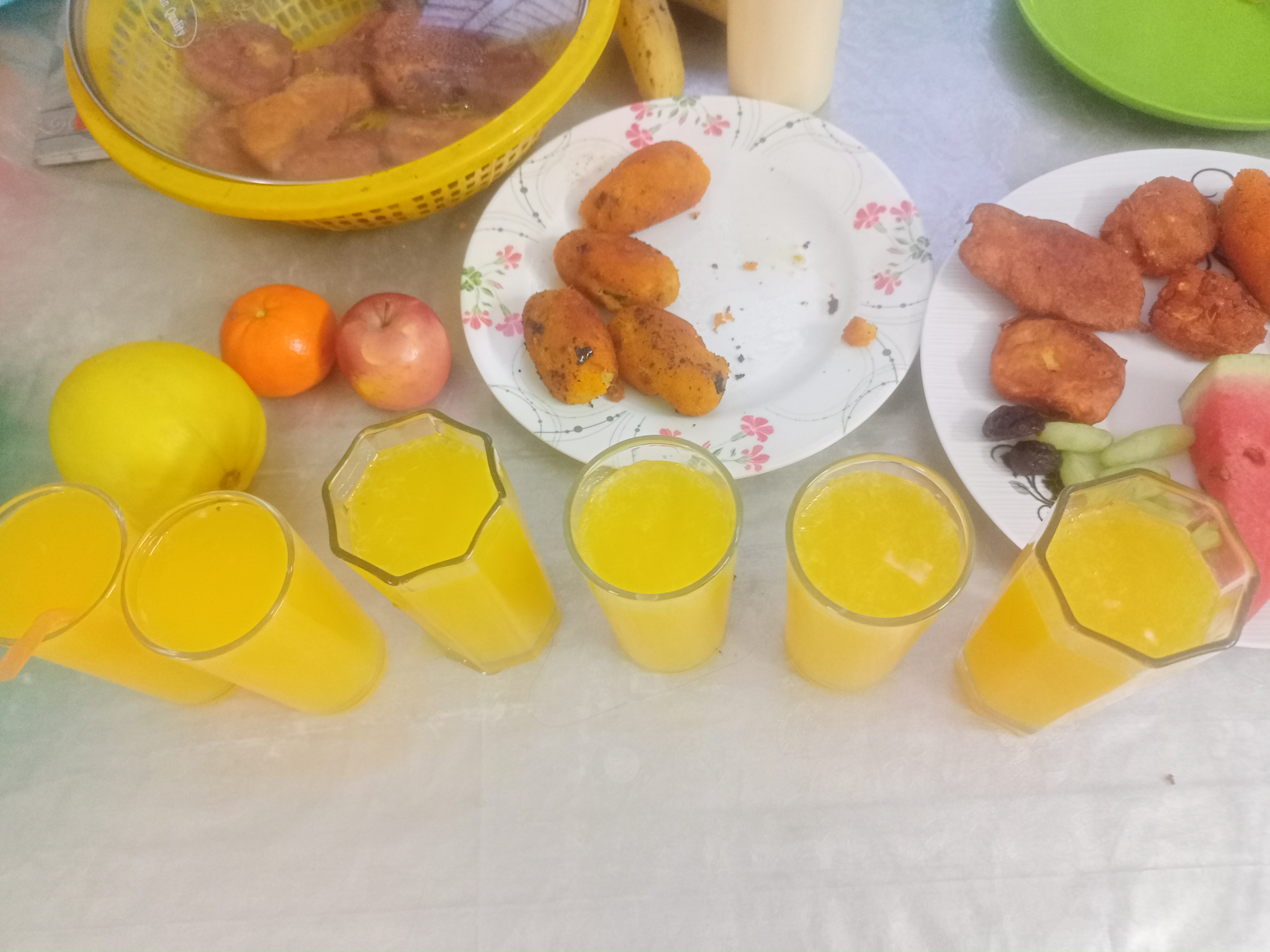 I try to organize new Iftars for my family every day. In fact, we always have to have good food for Iftar. It feels really bad if you don't have a good meal after fasting all day. We like to eat chickpeas, onions, purple potato chops, egg chops, bundiya, jilapi sharbat, dates and various types of fruits for iftar in the evening. We usually try to have more sherbet and fruit with all the iftar meals. Today's iftar had plenty of fruits and iftar items, with which we all had a very good iftar, Alhamdulillah.