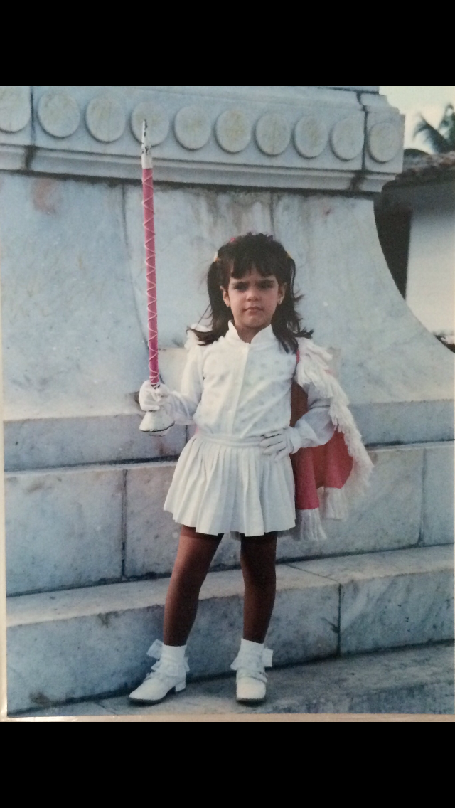 The best thing I remember of being a child is the fact of wearing costumes almost every day. They made me feel special and unique, it was so fun to walk around like I was able to be anything I wanted to be. In this photo I am 6 years old and that is my band suit. Cute, right? I totally looked like the boss, I still remember myself trying to be cool with that serious face of mine.