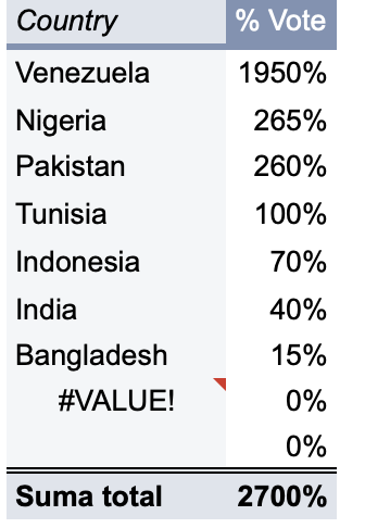 Below we demonstrate the geographical distribution of voting power around the world.