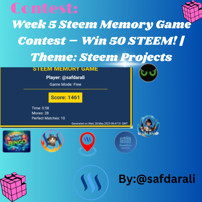 Week 5 Steem Memory Game Contest – Win 50 STEEM! | Theme: Steem Projects by @safdarali