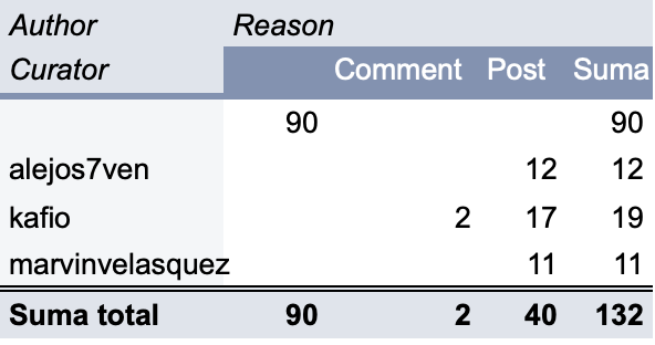 It is the performance achieved by each curator.