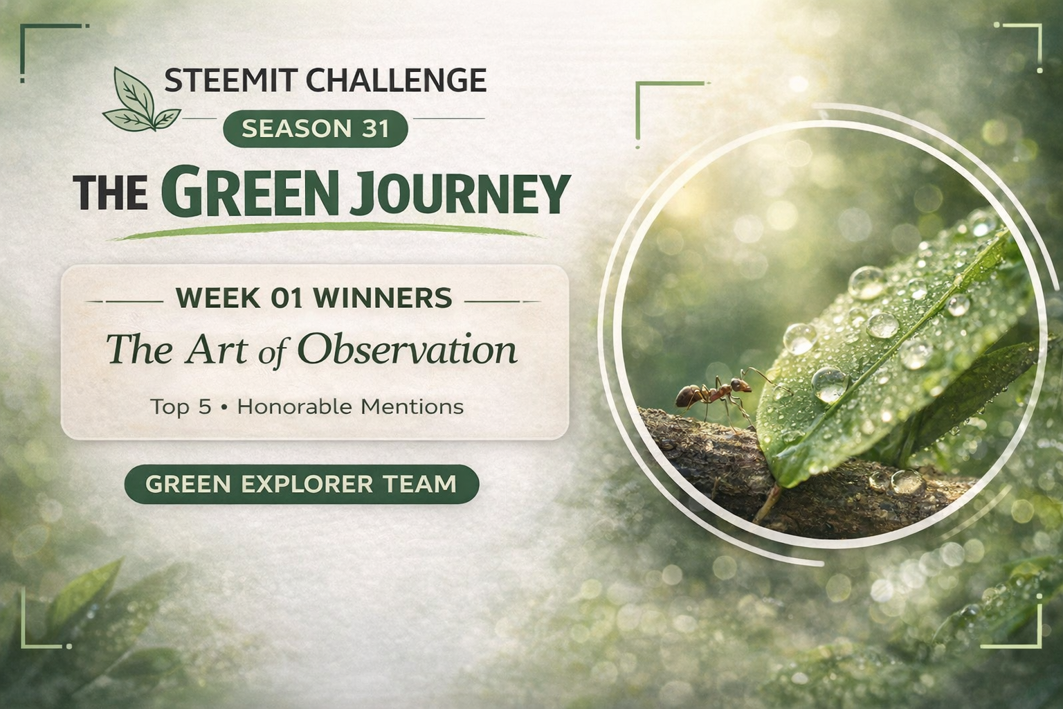 [WINNERS] SLC31-W1 || Week 01 || THE GREEN JOURNEY || The Art of Observation