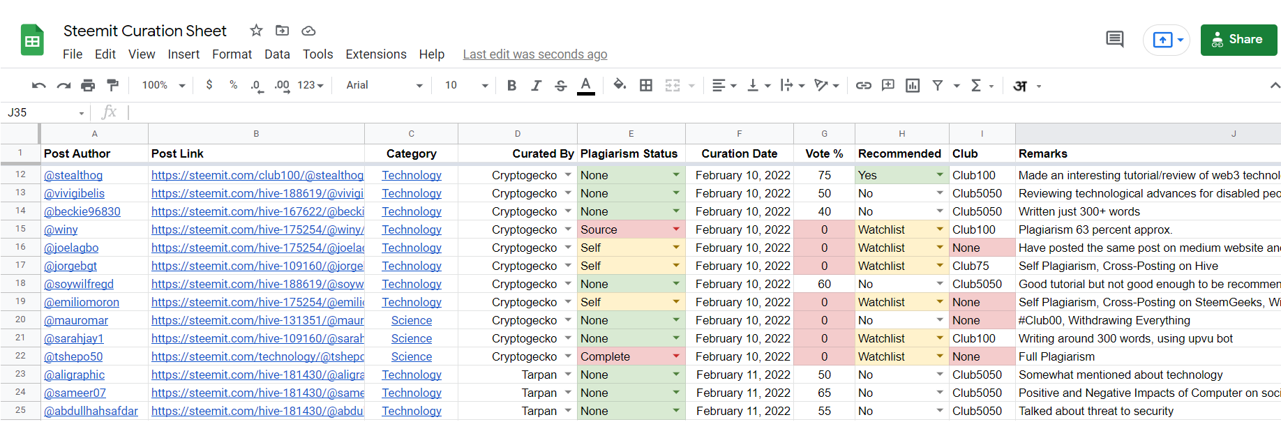 So, from this post, I would like to request these authors, whose names are mentioned in this table and if against your name there is some kind of plagiarism mentioned or if you are not following any club status, then please change that and try to work on your shortcomings as soon as possible, and maybe after some time, your posts will be curated and you too will get votes from the curating account.