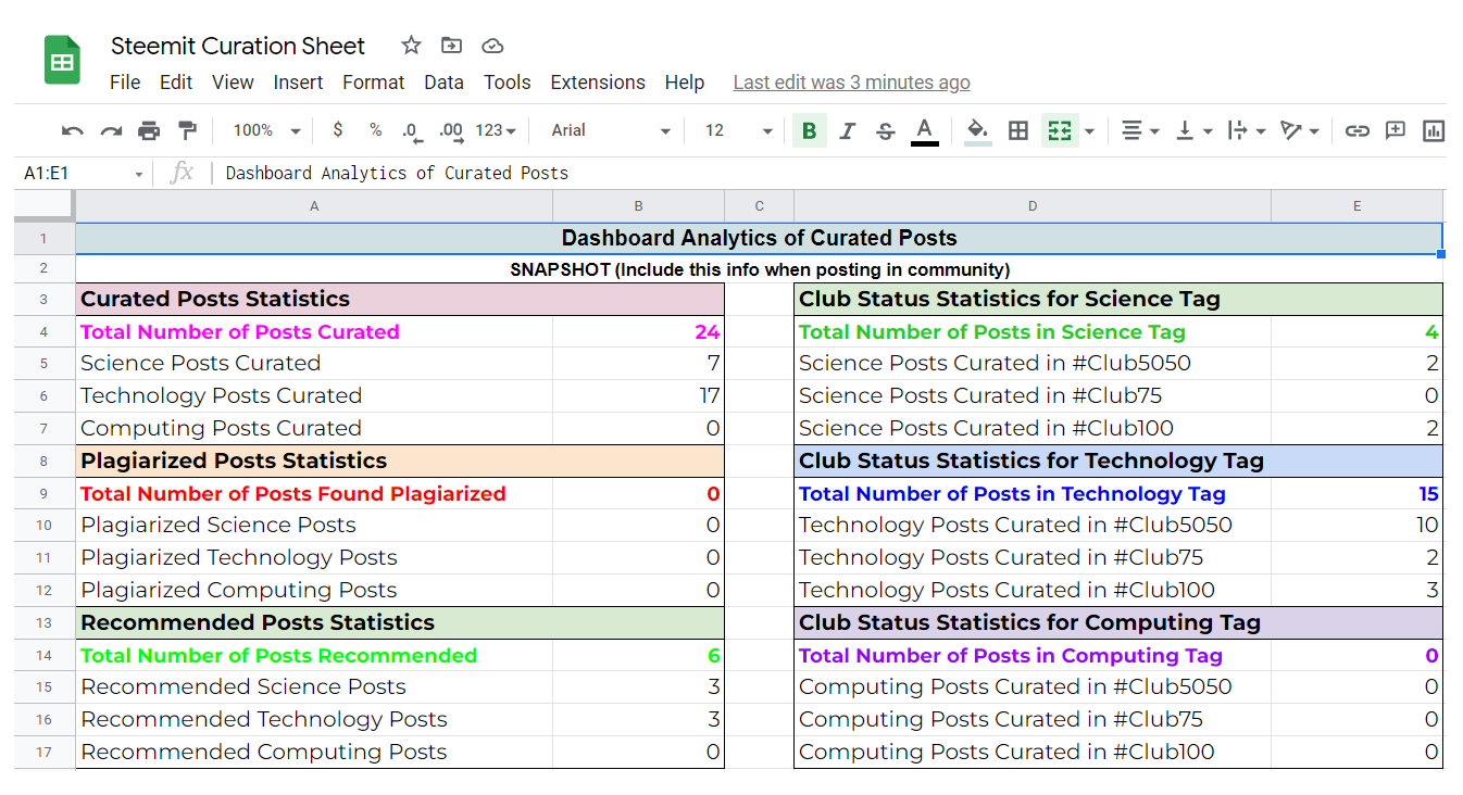 The above page in the sheet shows the number of submissions we got in the #science, #technology, and #computing tags. And as you can see that most of the submissions are in the #technology tag.