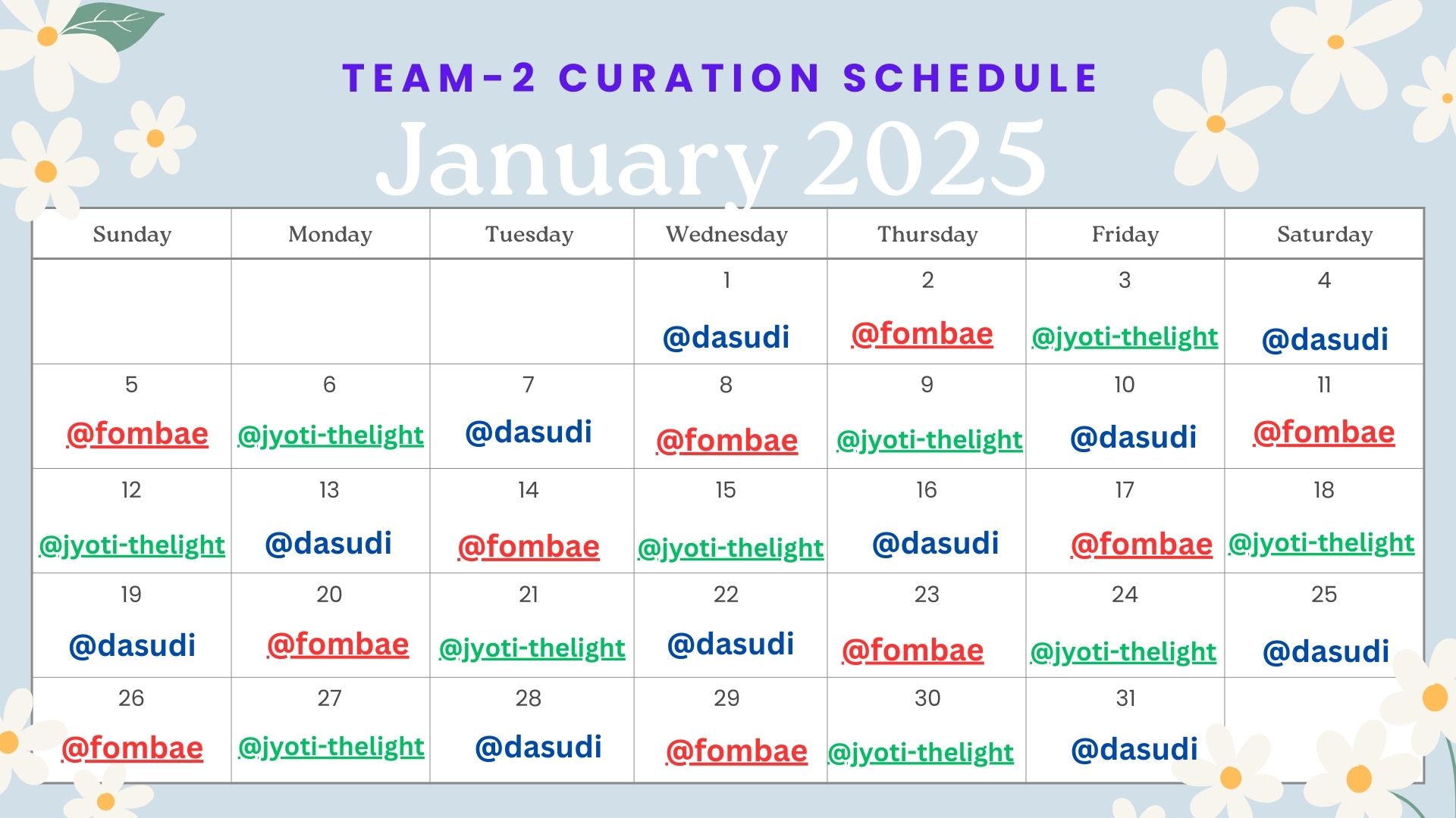 We express our gratitude for choosing us as Community Curators in January 2025. As Team-2, we are delighted to curate alongside the @steemcurator04 account. We are thrilled to have another chance to prove our superiority. Our members are prepared to act honorably and passionately as Community Curators. We're here today to present our Team Guidelines.