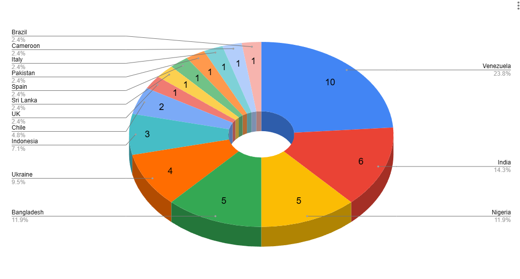 We've upvote posts from 14 countries.