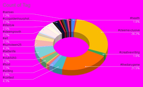tag count: Here the steemexclusive tag has the highest number. Thediarygame tag is in second place as seen in the chart below.