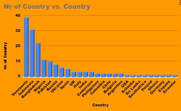 country count: Venezuela ranks highest, followed by Indonesia. Which I mentioned in the column below.