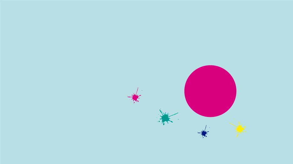 I started with a light blue background a magenta circle and several splashes of color