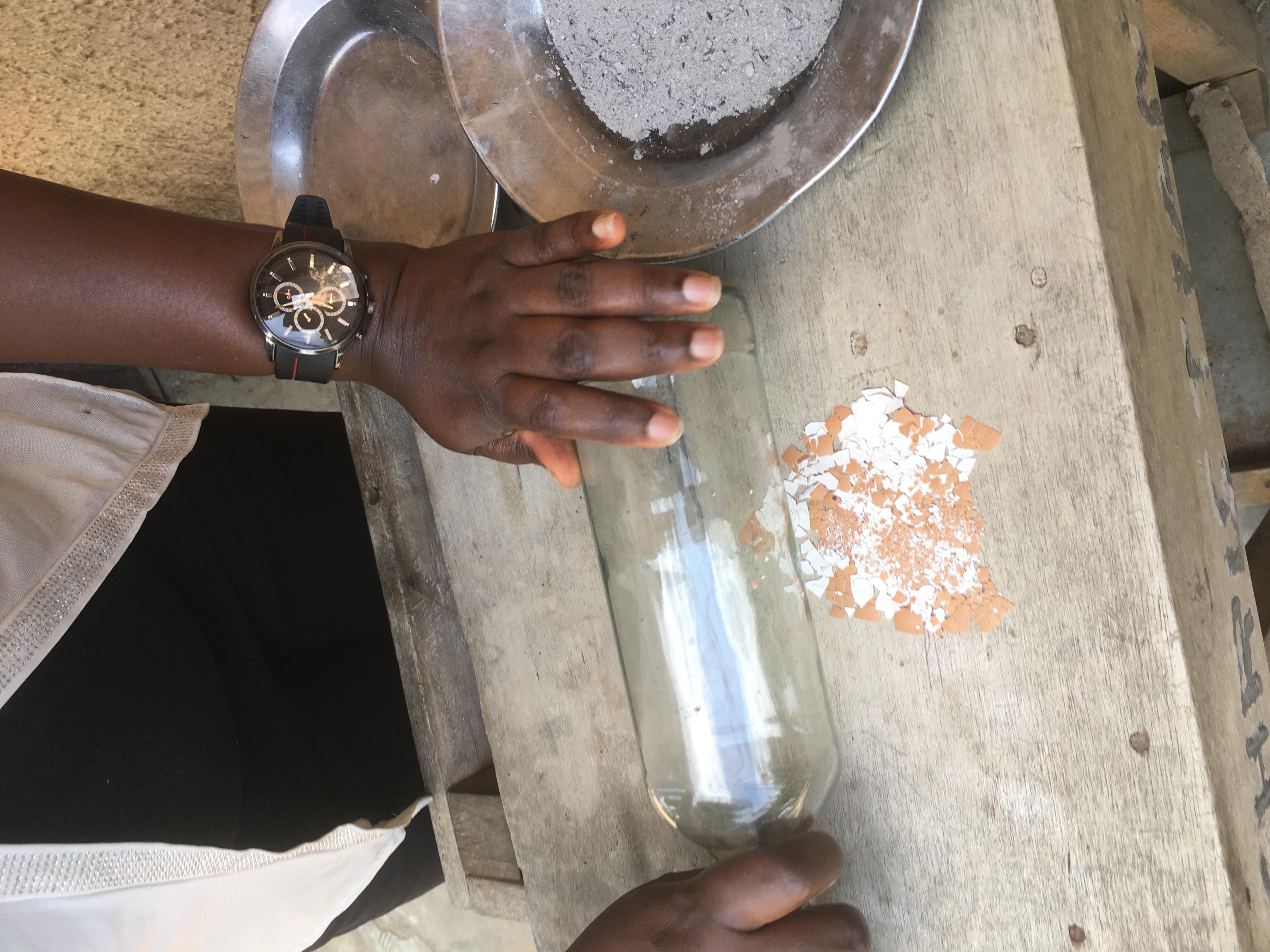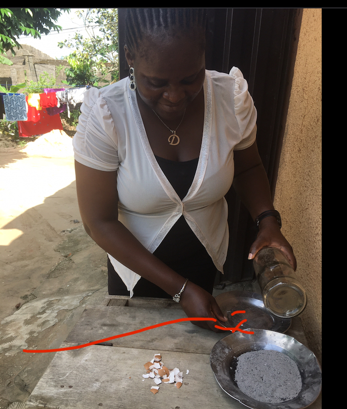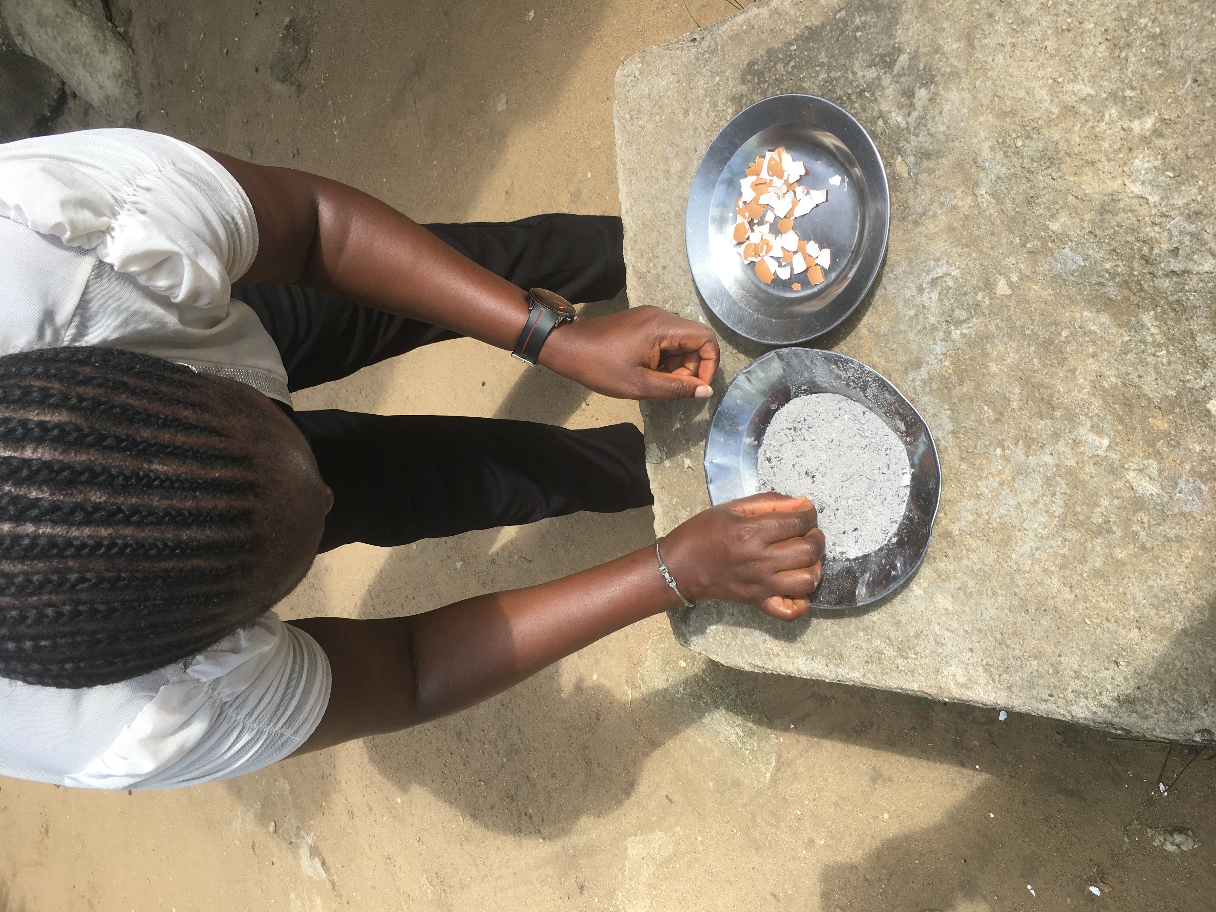 Mixing Egg shell and Ashes together
