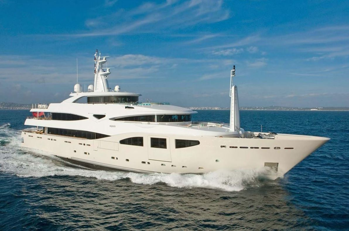 The famous fashion designer Giorgio Armani is the owner of the 65-meter superyacht "Main". It was constructed in 2008 by Italian yacht maker Codecasa. From the hull to the interiors, Armani was heavily involved in the yacht's design, adding features he thought were crucial for sailing and presenting a notion of home away from home. With its steel hull and aluminium superstructure, the yacht can reach a top speed of 17 knots thanks to its Caterpillar engines. It needs a crew of 14 in 8 cabins and can accommodate 14 guests in 7 cabins. The yacht's exterior and interior design showcase Armani's distinctive aesthetic, which emphasises comfort, elegance, and practicality.
