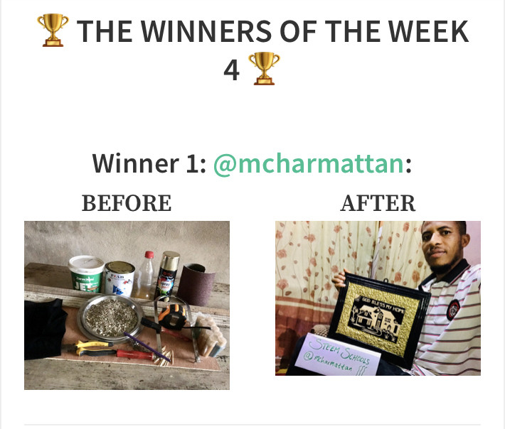 Firstly, my profound gratitude goes to the MOD of the Steem Schools @enveng who complimented me @mcharmattan on one of my Art Works and also invited me to participate in the “BEFORE & AFTER! CONTEST - Week 4: with the tag: Design Steem Exclusive Things from Raw or Waste Materials”