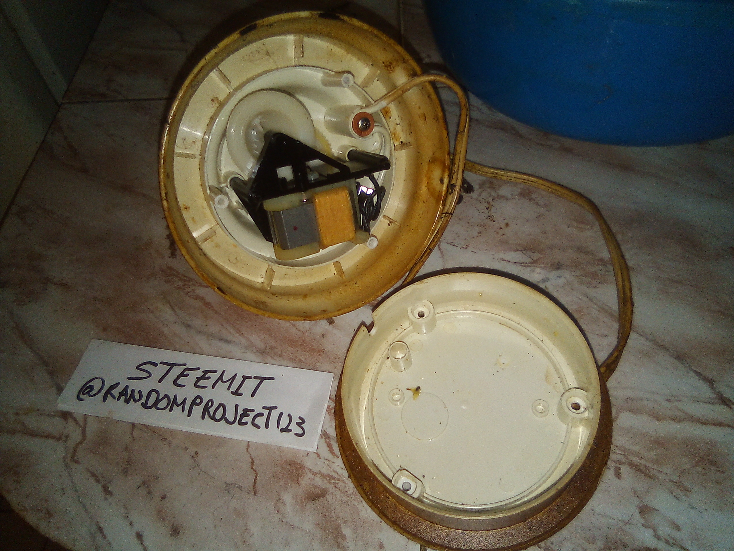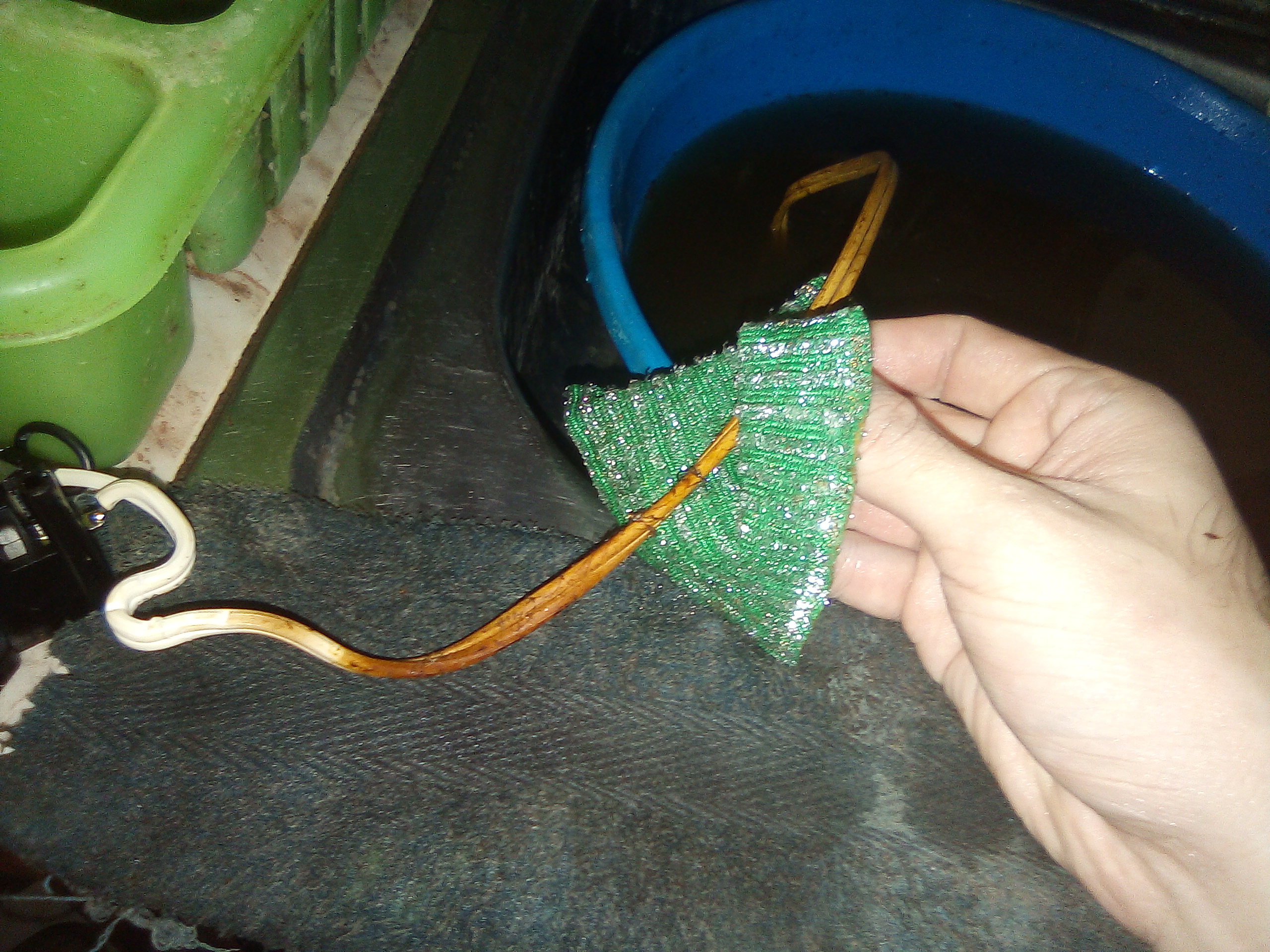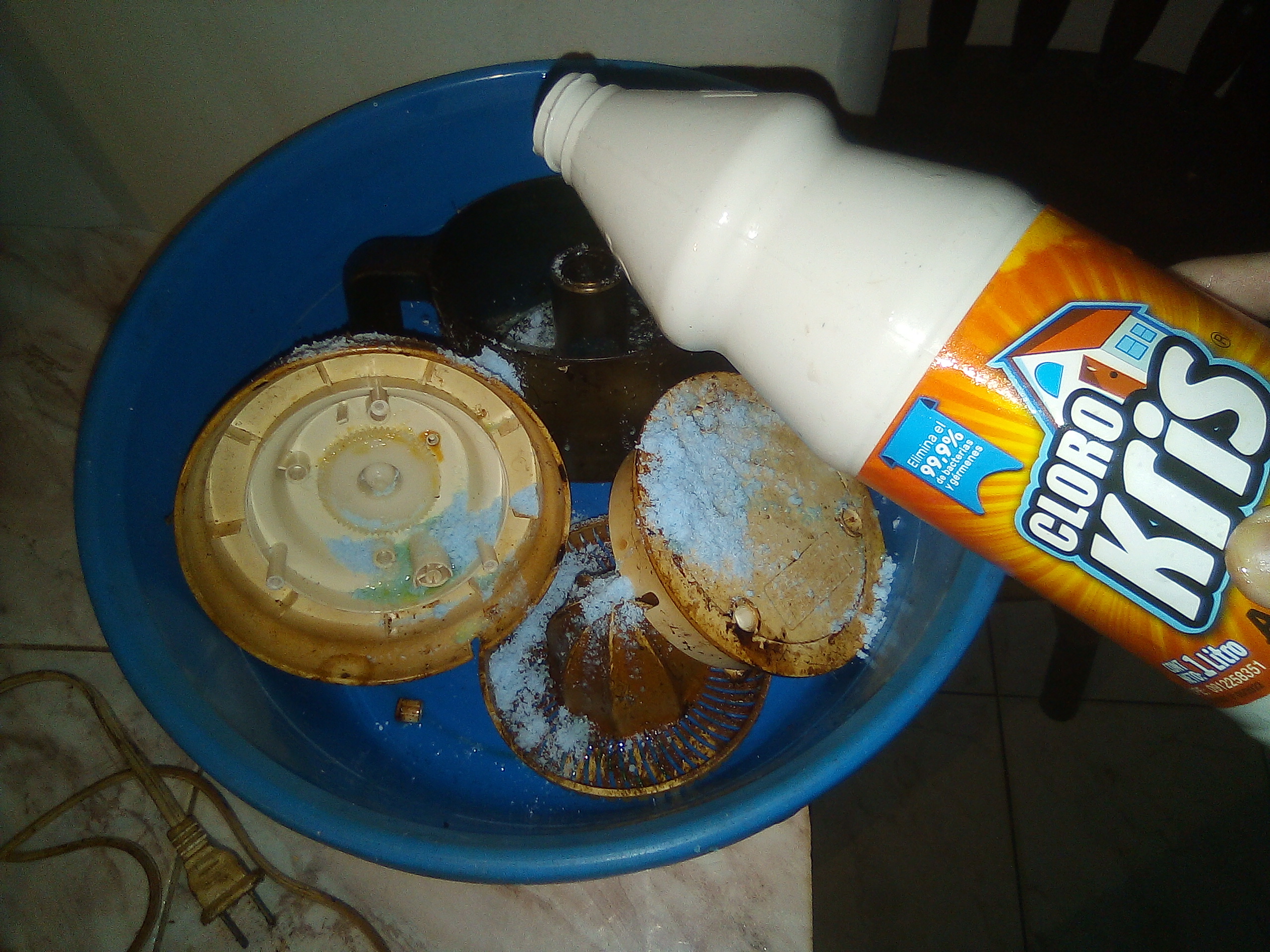 Como supuse que el cable estaba cortado y con honestidad no sabia si el motor funcionaba, decidí lavarlo tambien utilizando la misma esponja, aunque con poco exito, ya que no podia dejarlo remojando por mucho tiempo