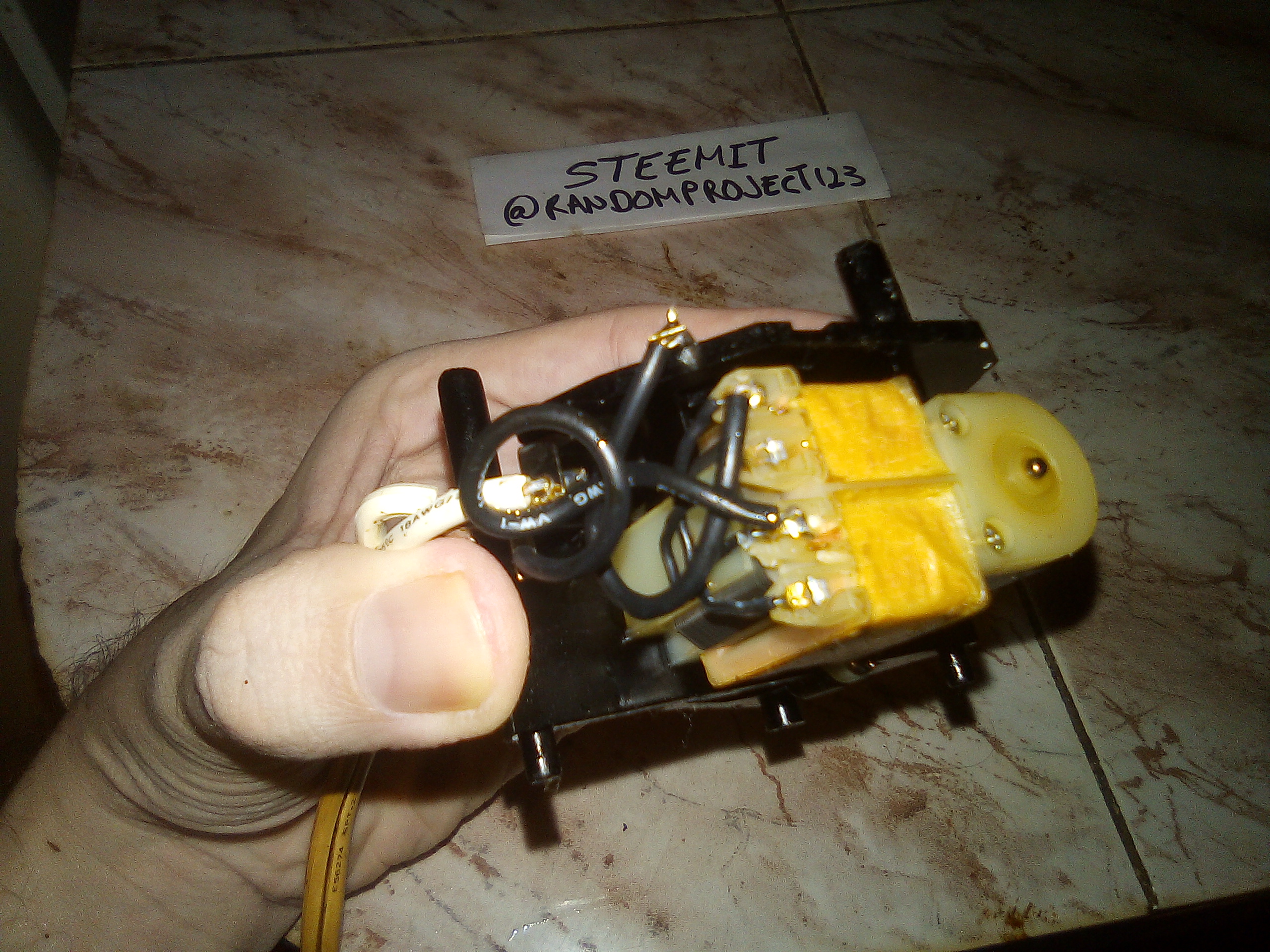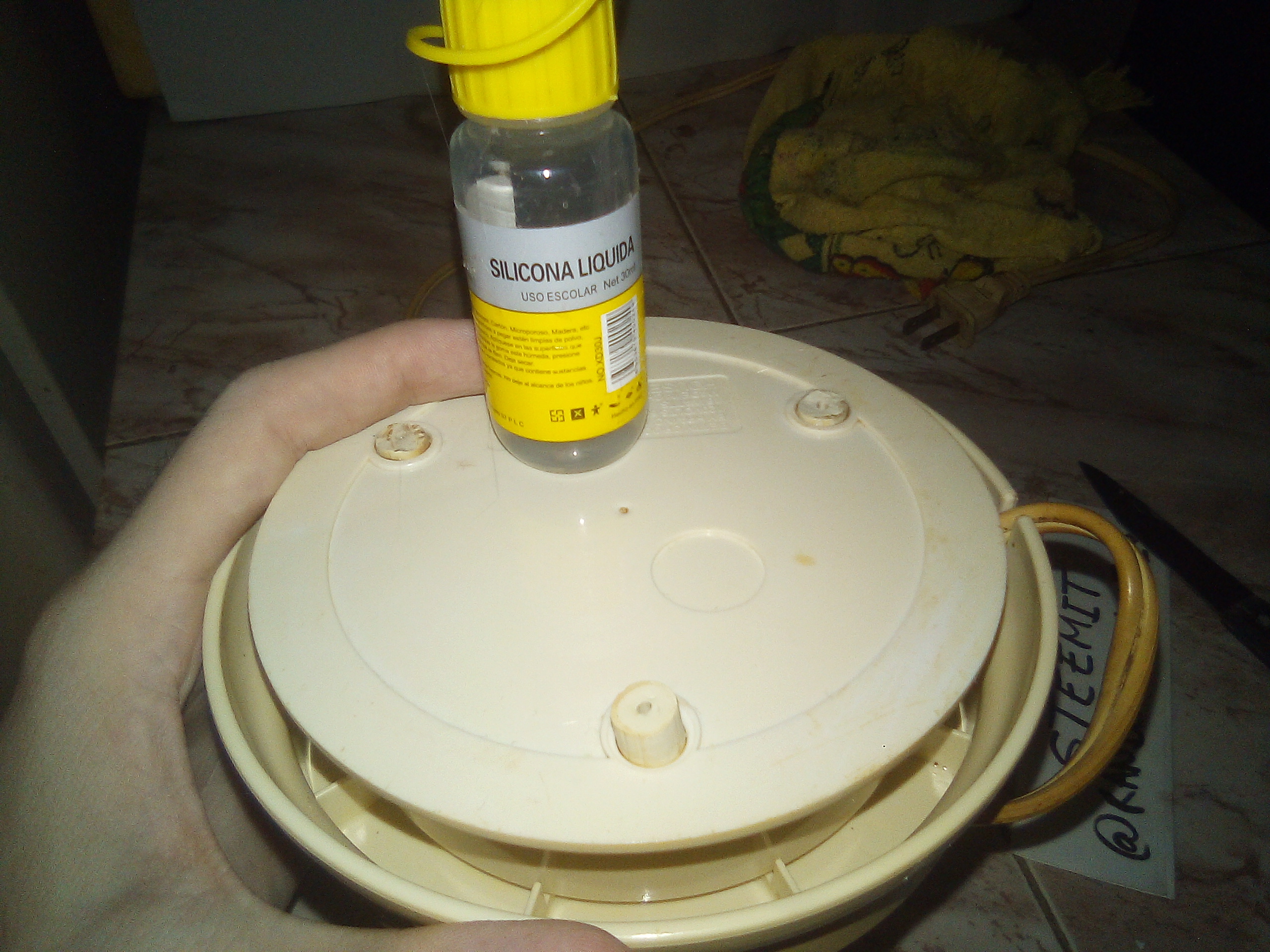 Tenia solo dos tapones en la parte de abajo, asi que supuse que al encenderse empezaria a bailar por todo el meson. Lo que hice fué cortar una a la mitad y para rellenar el espacio faltante utilicé silicon liquido, lo que haria tambien que no se salieran por accidente en un futuro.