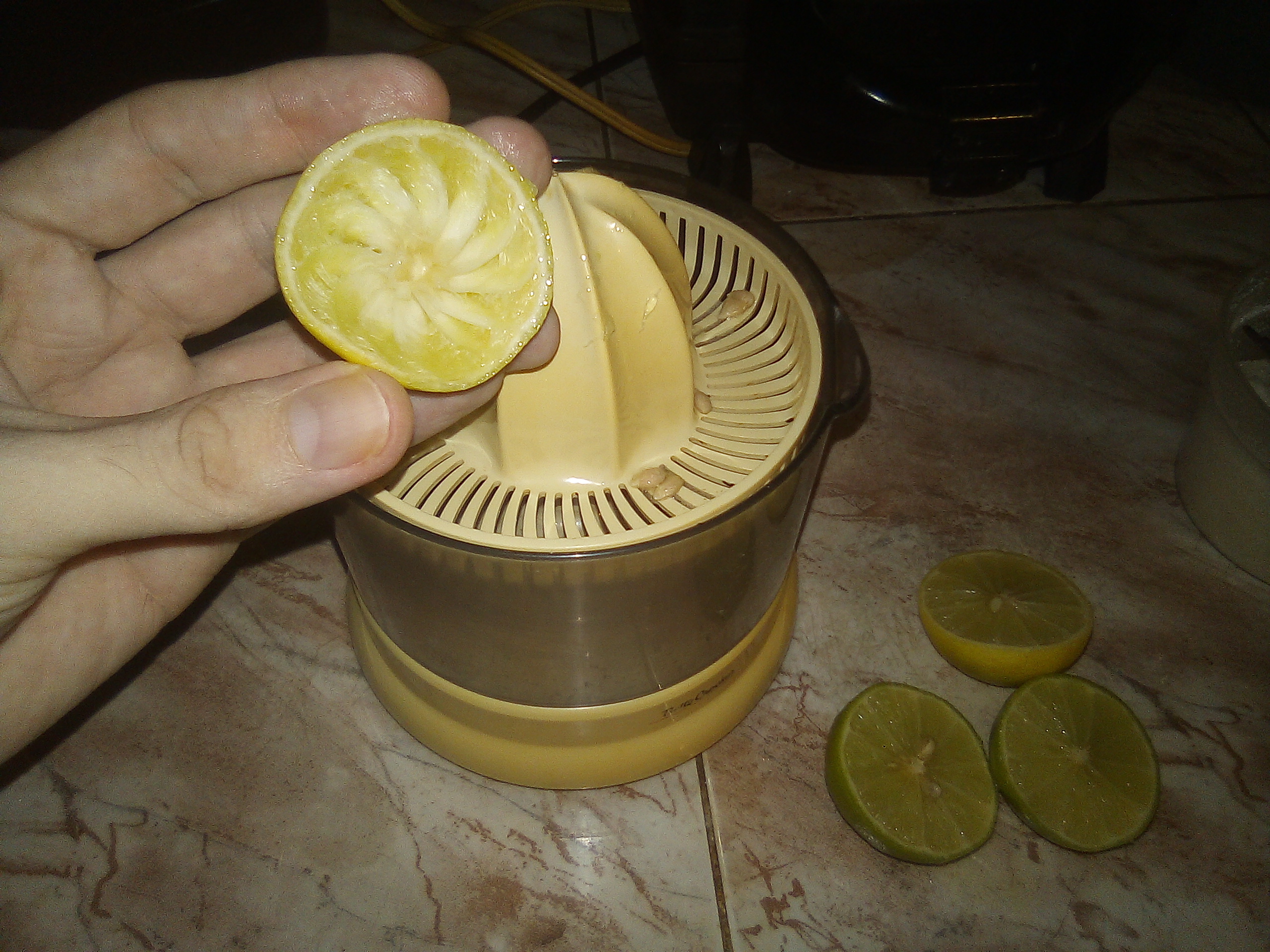 Por casa no tenia naranjas, asi que utilicé un par de limones y me dispuse a ver si funcionaba