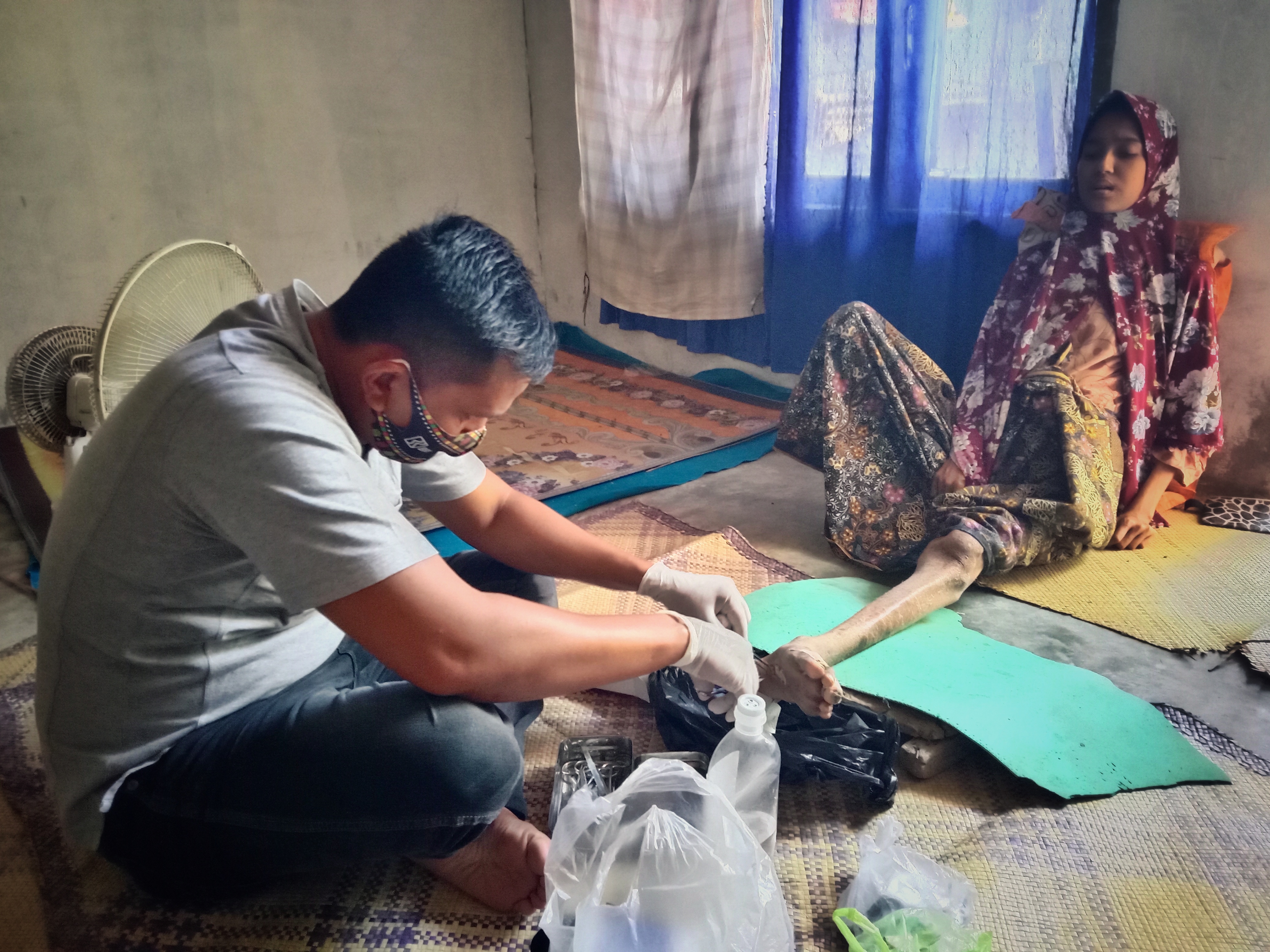 Uang tunai yang kami berikan secara bertahap yakni saat kunjungan perdana pada hari Jumat (16/04/2021) lalu dan juga pada hari Minggu (18/04/2021). Sedangkan perawatan luka sudah dilakukan oleh seorang perawat yang kami datangkan ke rumah ibu Nasriah dengan didampingi oleh @nazarul dan @mad.demon