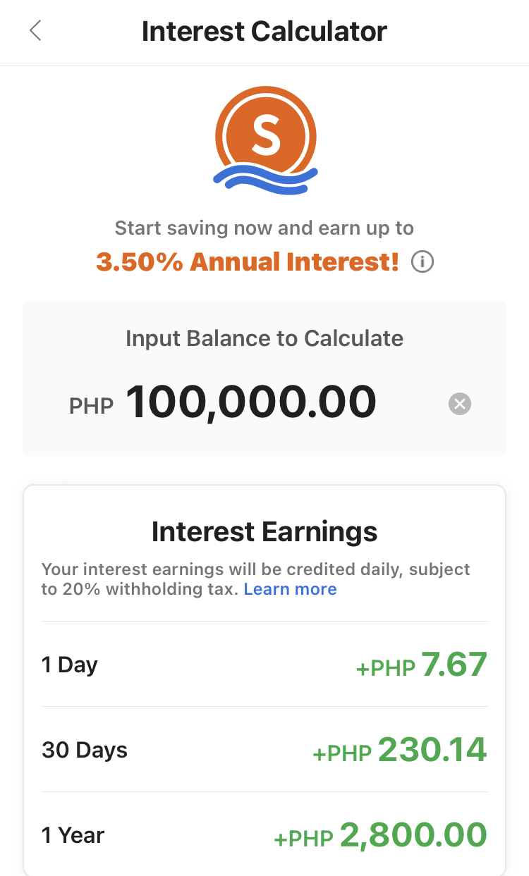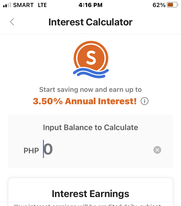 This gives a you the interface to compute the interest earnings to extepect when you click home and the “3.5% tab”.