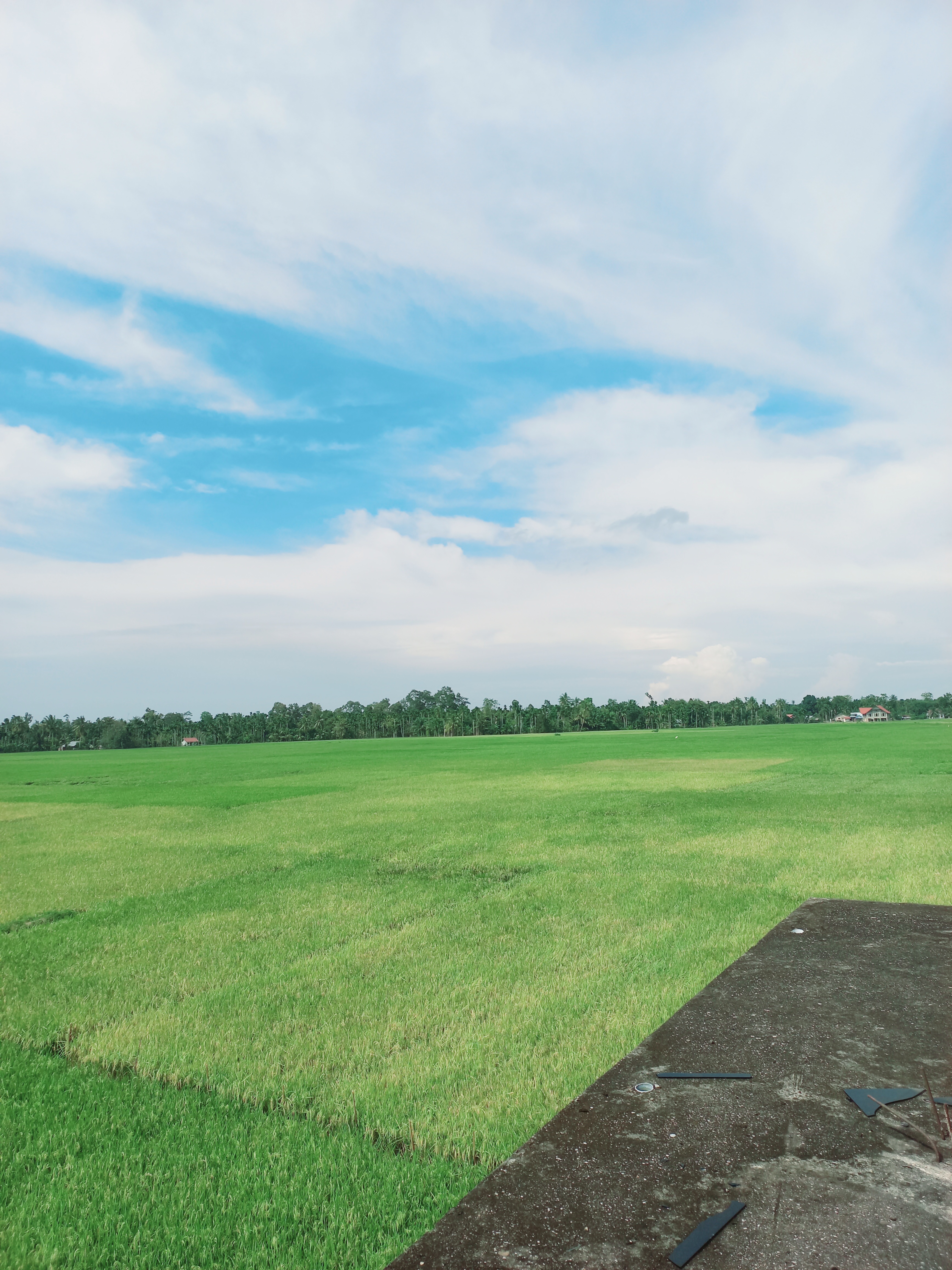 fresco, los campos de arroz se extienden tan anchos.
