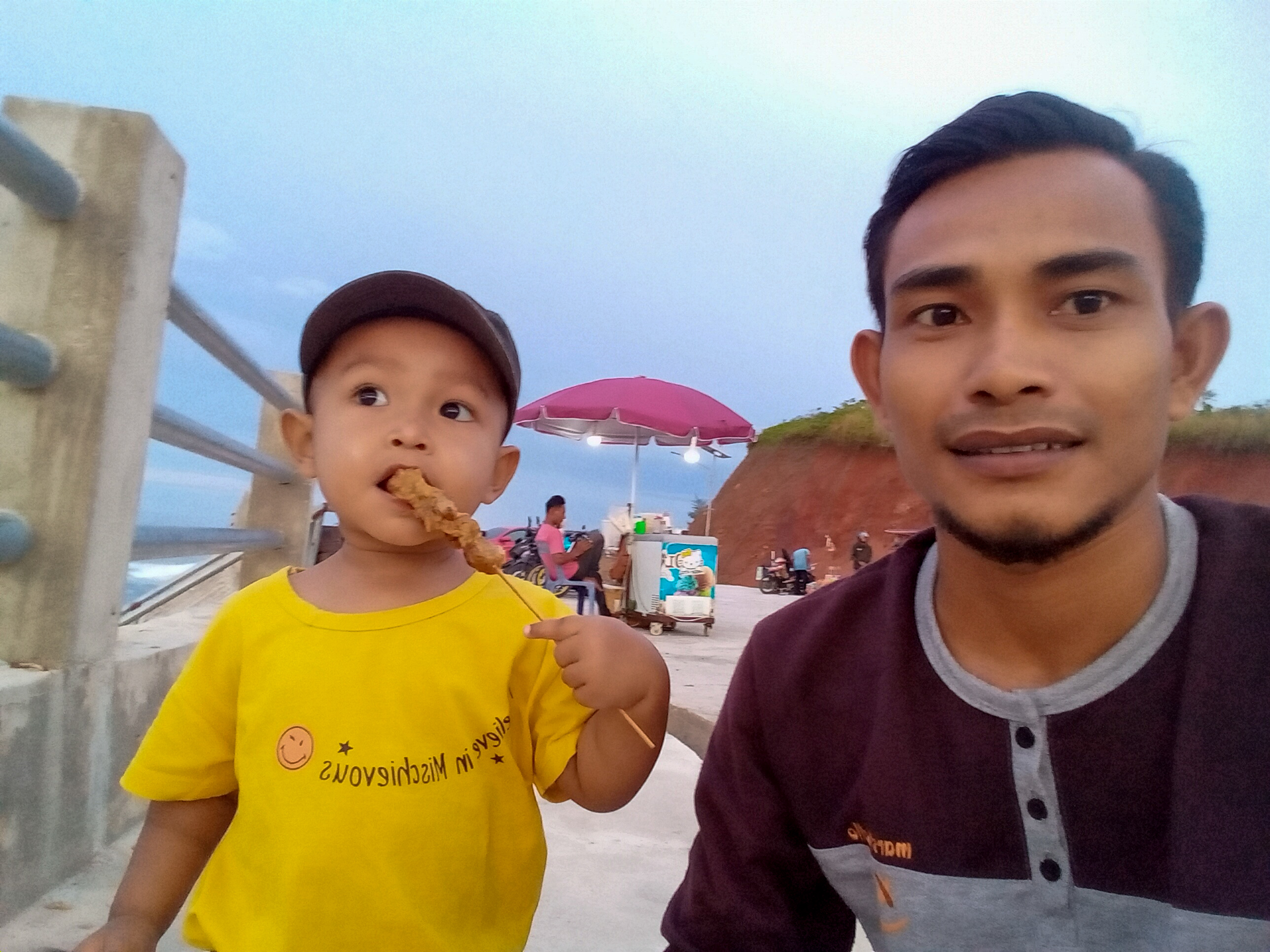 Kami hanya sekedar menikmati suasana pantai, sekedar menikmati hembusan angin dan deburan ombak yang berirama, ditemani dengan minuman dan makanan ringan sederhana saja. Seakan dengan sangat cepat mengembalikan semangat saya. Selain itu, saya juga berkesempatan mengabadikan beberapa gambar, alih-alih menyalurkan hobi untuk mengasah bakat photography.