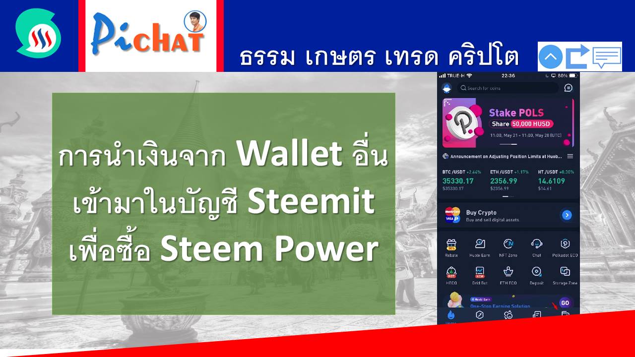 หลังจากผมหาวิธีอยู่นานว่าจะทำอย่างไร ตอนนี้สามารถทำได้เป็นที่เรียบร้อยก็เลยนำมาแบ่งปันกัน โดยผมใช้ Exchange Huobi ในการส่งเงินเข้ามาใน Steem Wallet เพราะตอนนี้ทาง Binance กำลังปรับปรุงระบบของเหรียญ STEEM เลยไม่สามารถทำจาก Binance ได้ และถ้าใครใช้ Exchange อื่นๆ วิธีการก็น่าจะไม่แตกต่างกัน