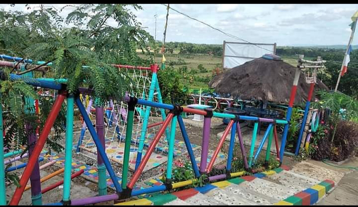 Lahan kosong dicat agar meriah, dijadikan arena permainan anak anak..