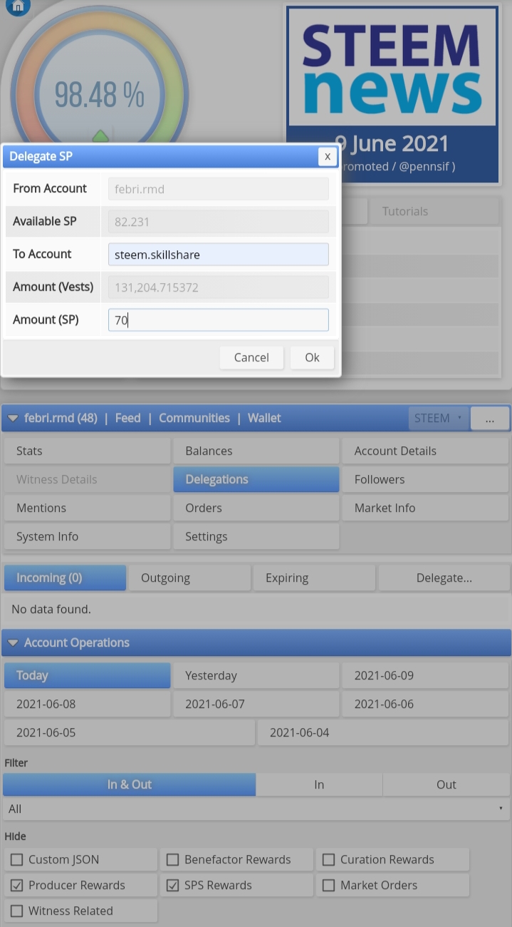 So far I have collected 82 steem power for the past two months and I delegated 70 steem power to the @steem.skillshare community because I think this community has good potential and with this community we can learn new things that we can't and also teach what we can to others.