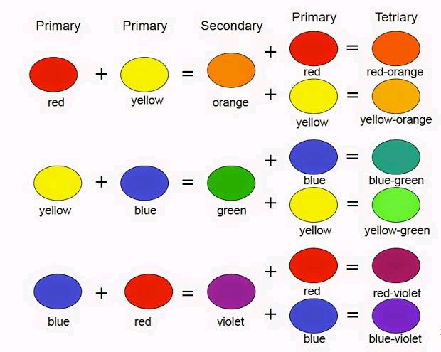 This colours are said to be basic colours and are very original, meaning they were not derived by mixing two or more colours together. Example of these colours are RED, BLUE and YELLOW