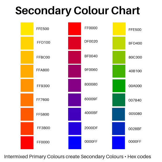 - Secondary colours.