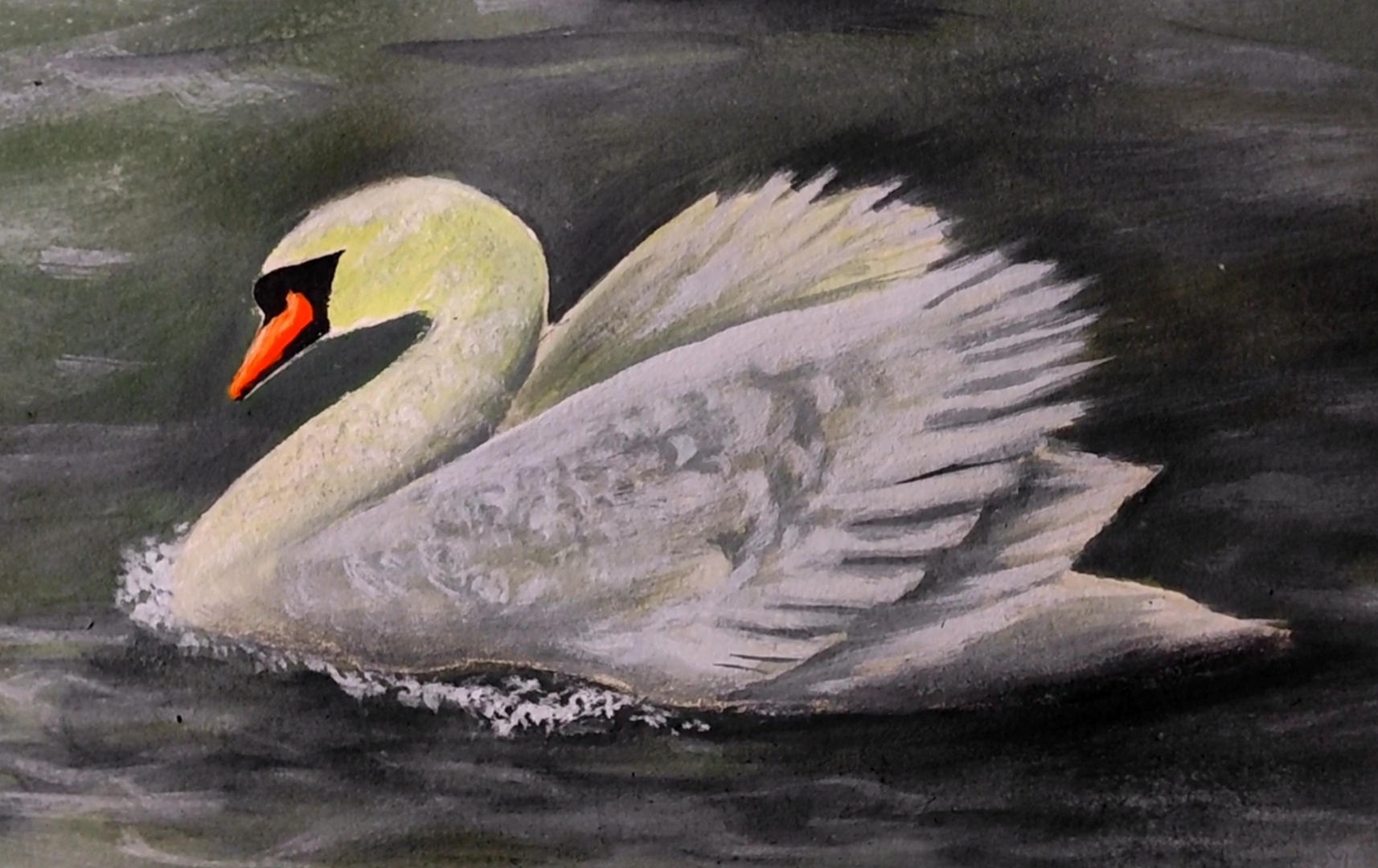 At first I took all the instruments. then I made border by masking tape. Then I draw the shape of swan by graphite pencil. And i started to colou. Firstly I draw the background of the object.