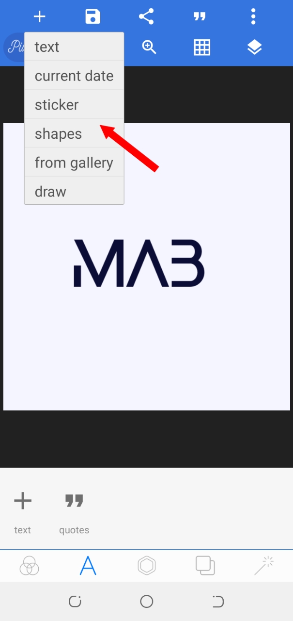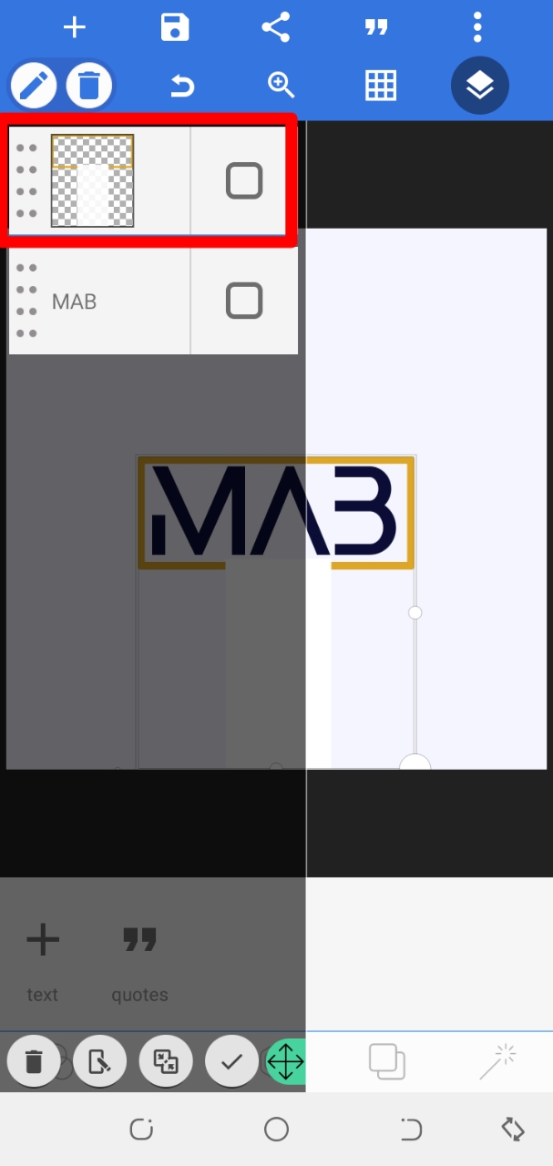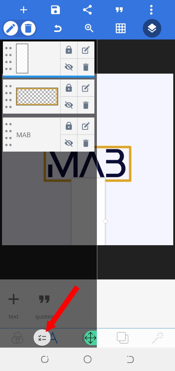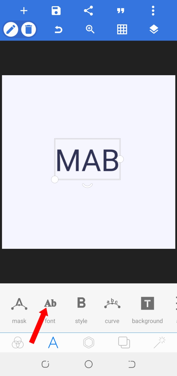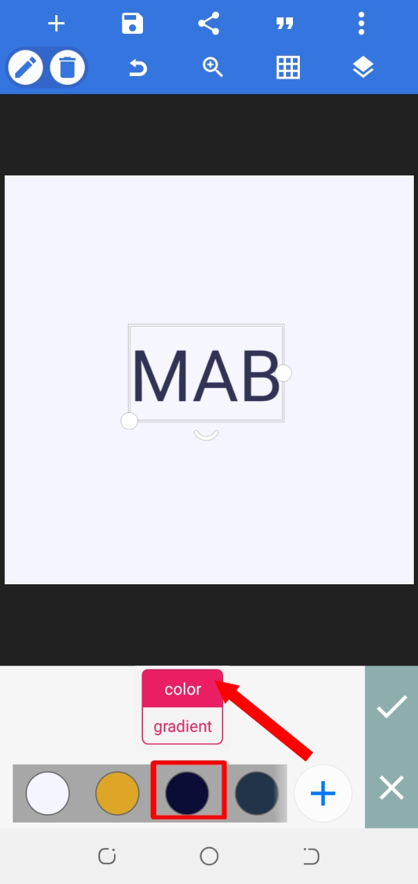 • I'll go ahead to my text option and input my text "MAB" then click on the colour icon to change the colour of my text