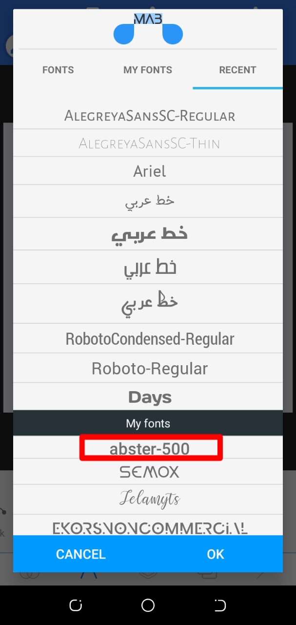• After that, i clicked on the font icon and used the "Abster-500 font" for this class