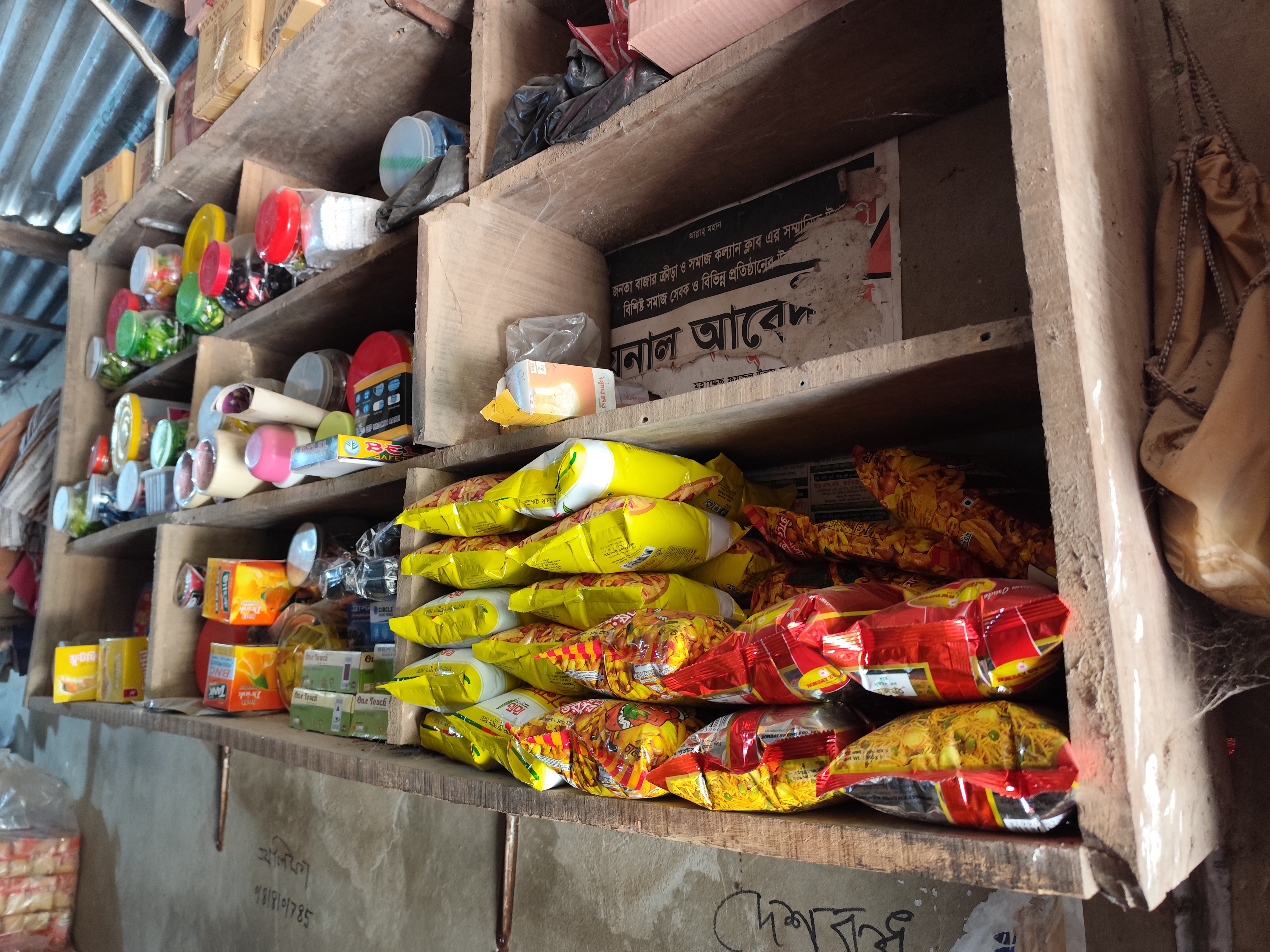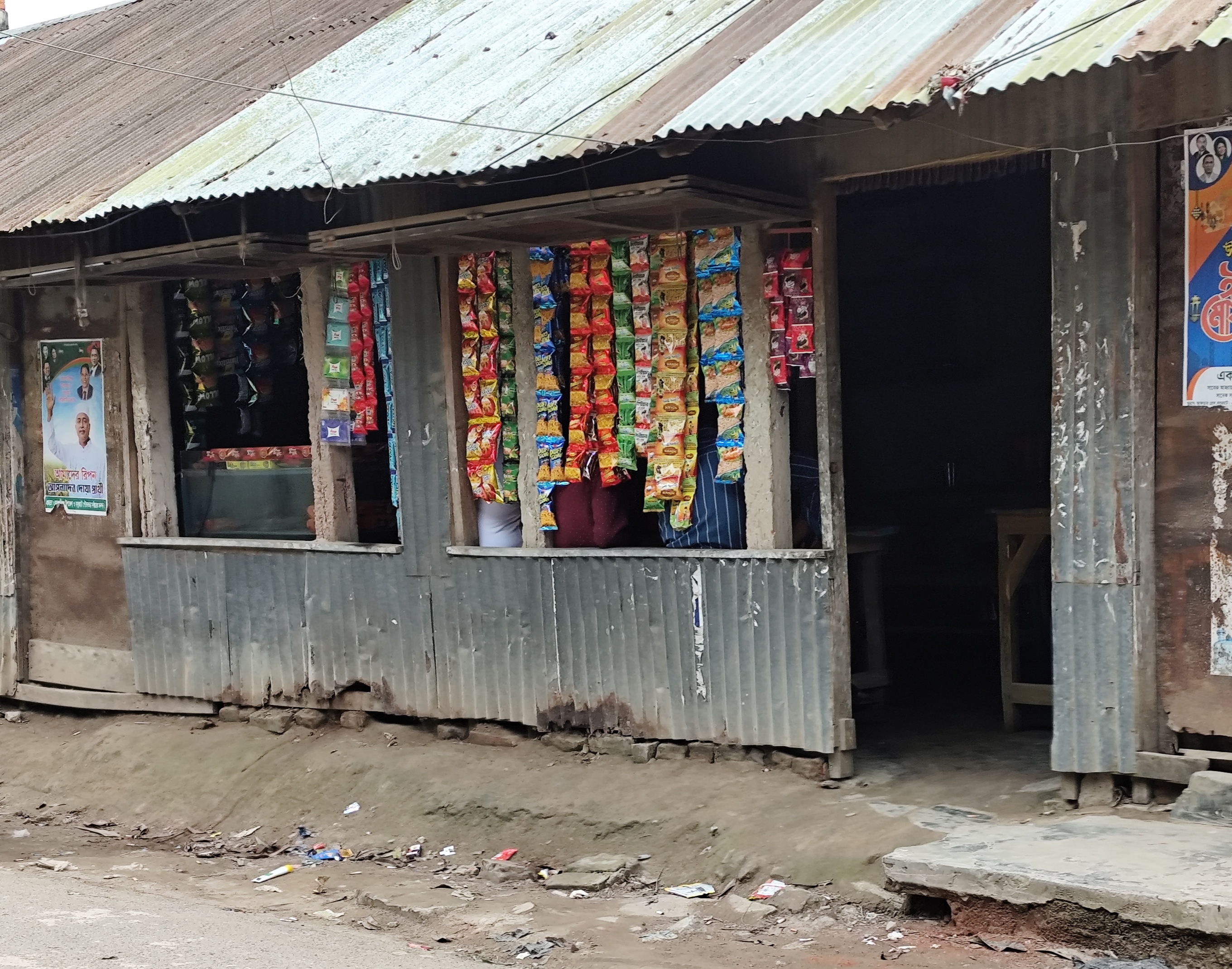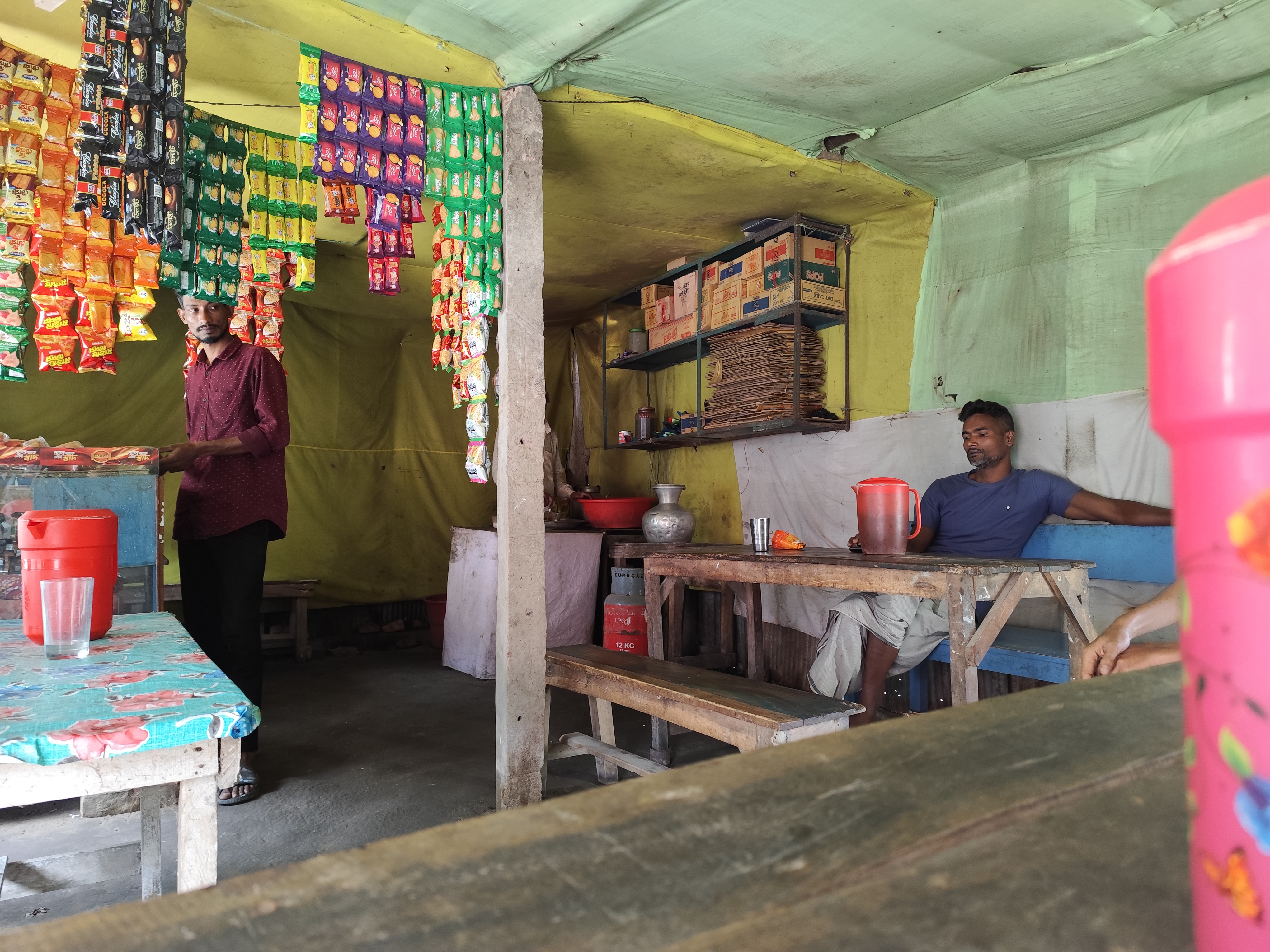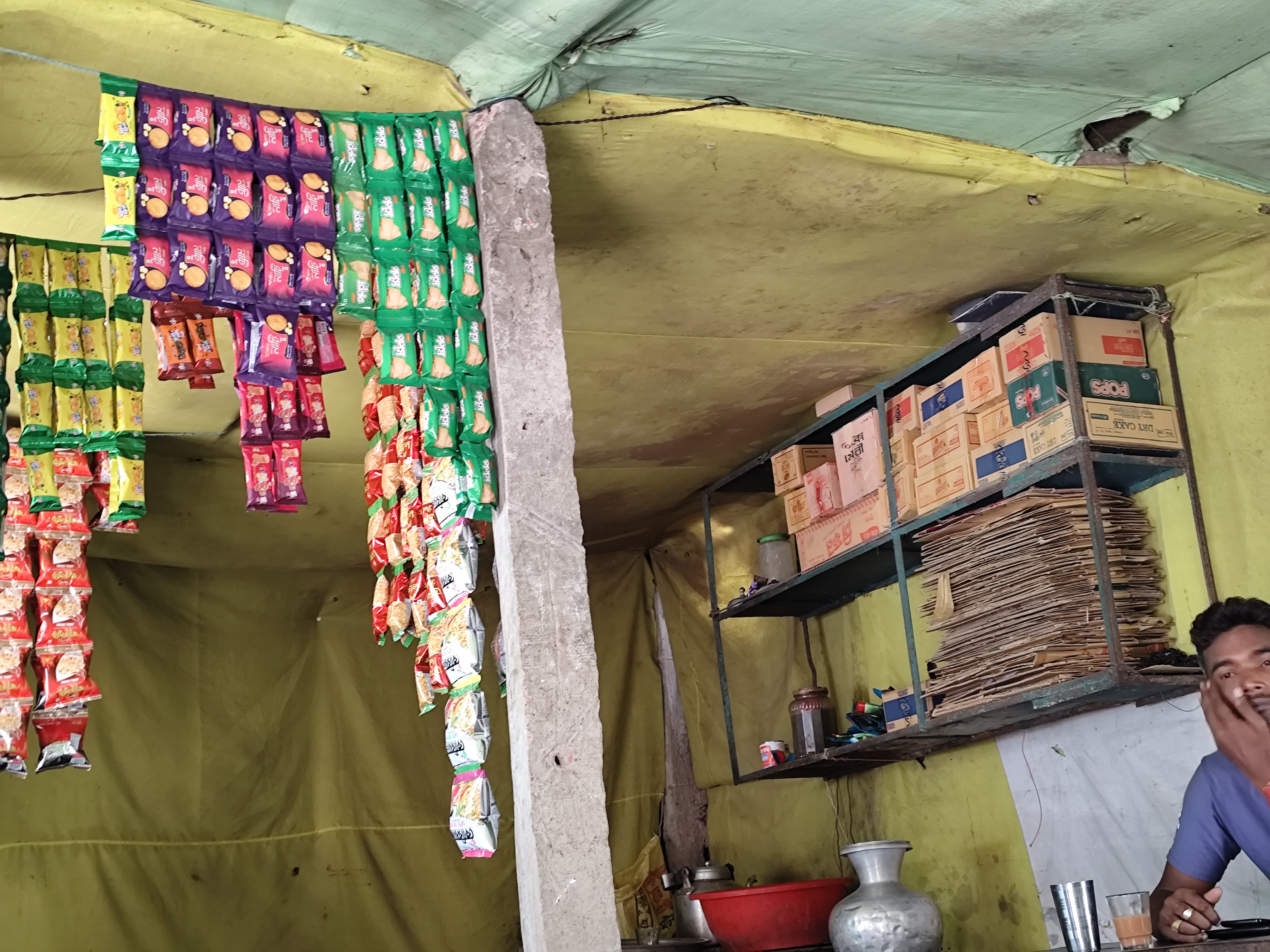 And besides tea, he kept biscuits, Chanachur and good quality Tyakha biscuits. Moreover, he kept the different types of chips and small biscuits that can be seen here. And in the afternoon and evening, people from around come to this shop and chat. And at that time, there is no place to sit in the shop. Because many customers come to his shop at that time and have breakfast and chat. In other words, his shop is like a meeting place. Here, they can inquire about each other and meet each other. And the young people sit in his shop, have breakfast and spend some time.