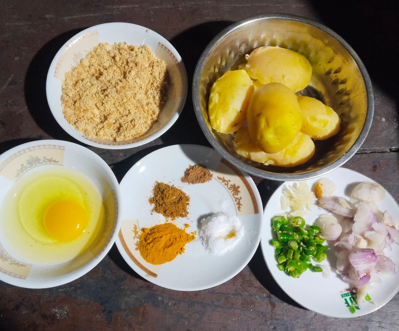 No, I had no problem finding the ingredients for this recipe, rather they were all in my house. Potatoes are the favorite food of the Bengali nation which is in everyone's house and food made with potatoes is always on everyone's favorite list. Potatoes and eggs are always in my house because any breakfast item can be made very easily with them. And the spices used in these are always stored in my house, because these spices are needed for daily cooking. And yes, when it comes to biscuit powder, I make it quickly using home methods. To make biscuit powder, I use a spoon or something hard so that it can be made quickly. I already had this powder stored in my house with which I make potato cakes.