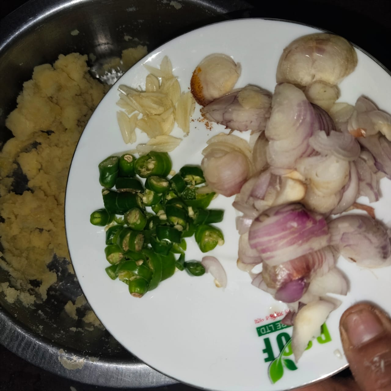 Step-1: First, collect everything. Then clean the potatoes well and boil them in a pressure cooker for 15 minutes. Boil the potatoes and finely chop the onion, garlic and green chilies. Once the potatoes are cooked, cool them for some time, peel the potatoes and mash them.