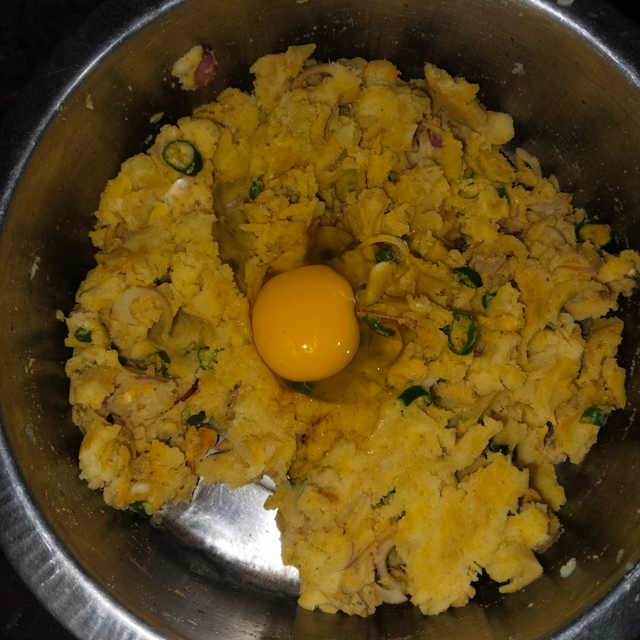 Step-3: Once all the spices are mixed, I add the egg and mix it well.