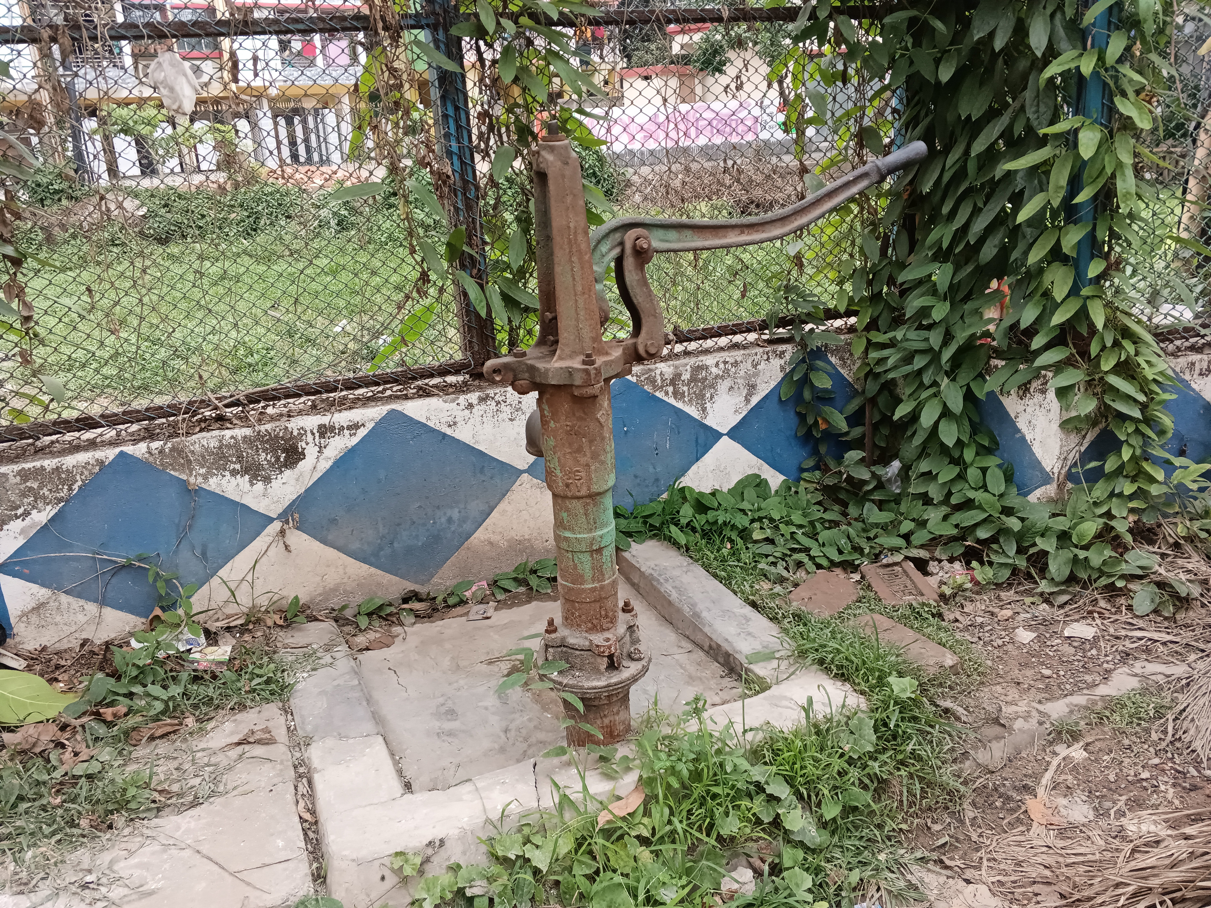 This is hand pump. We had it in our home before, but now we have a water connection provided by KMC (Kolkata Municipal Corporation). Every home in our area had hand pump, but now those have been unused, because KMC installed water pipeline to provide the water connection to every home.