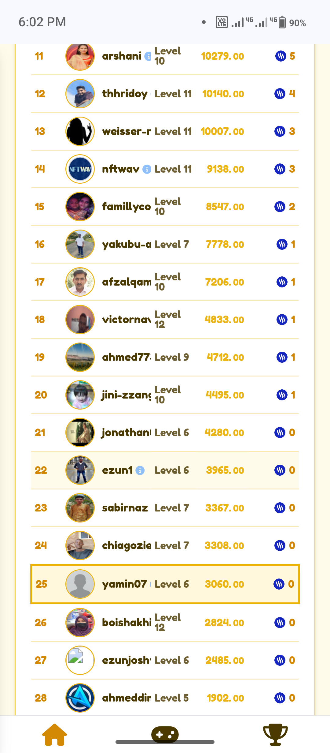 After playing all the games, I entered the leader board and saw that my position was at number 22. I cannot score much, that is why I do not get much points. I would have liked it if I could score more in every game. That's all for today.