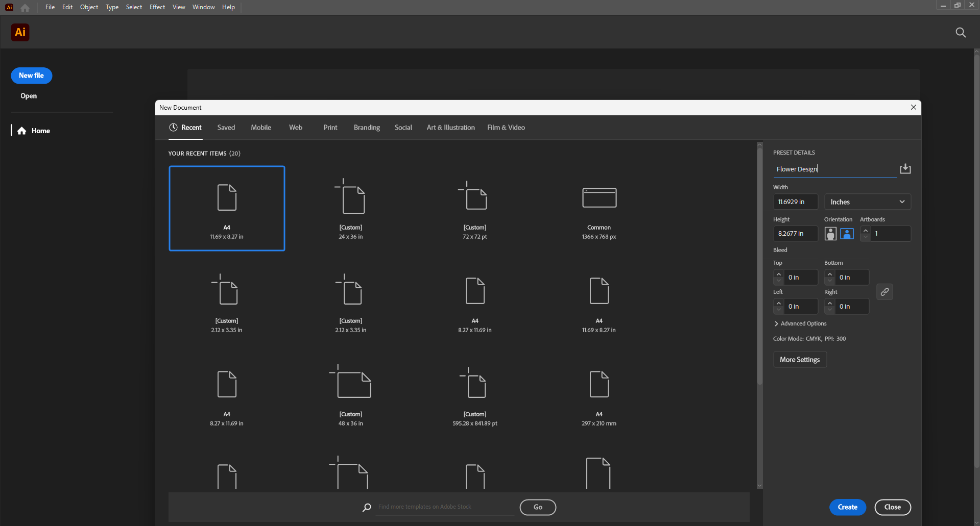 Assalamu Alaikum Dear friends, how are you all? Today I have come with a flower design video. So let's start today's flower design. First, I open the Adobe Illustrator software from my computer. Then I take a new document.