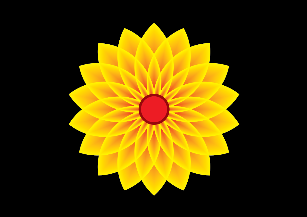 Now I took a circle of red color for the middle flower. I aligned it in the middle. Then I copied another circle and put it behind it and gave it a light chocolate color. Then I added a black background. And that's how I made my amazing yellow flower design today. So this is the final output of my yellow flower design today.