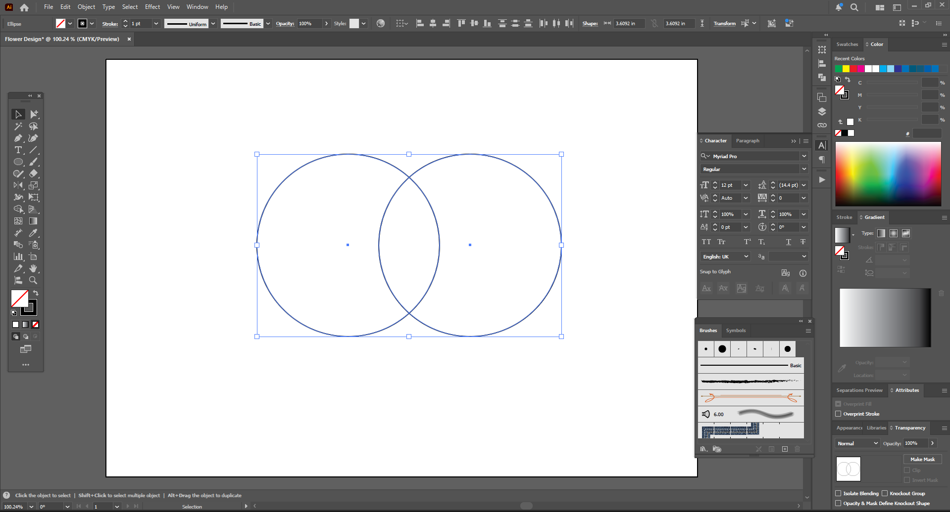 I took the new document in A4 size in landscape size. Then I gave it a file name and clicked OK. Then a new artboard opened in front of me. Then I drew a circle. After drawing the circle, I copied the circle. Then I held the two circles together and removed the two parts on both sides with the Sep Builder tool.