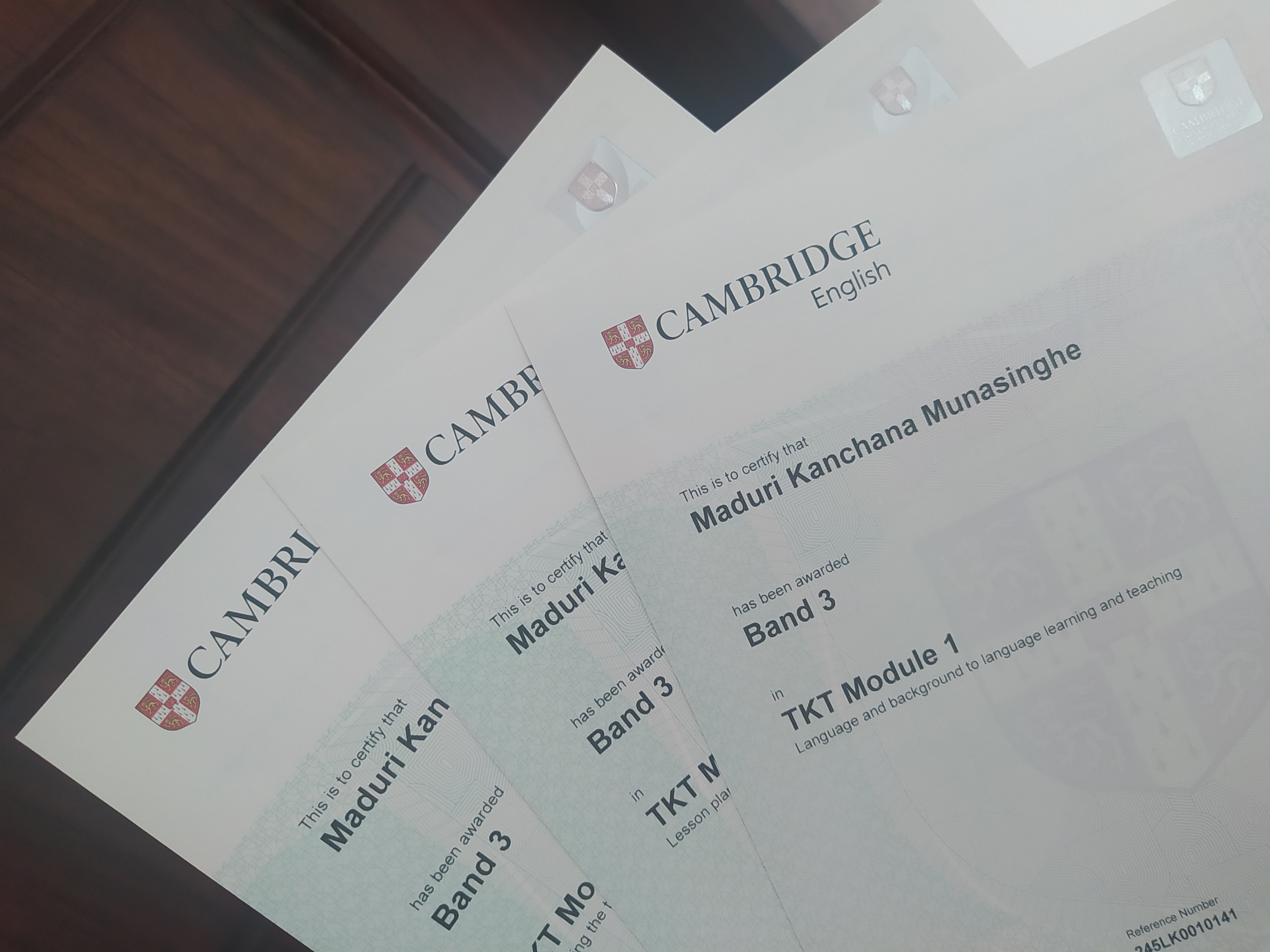 I've mentioned that I started following British council TKT module 1,2,3 last year . It was a government funded program for selected teachers . Recently I Got my certificates of them and I have got band 3 for all the modules. Which is a good result. I'm happy about what I learned and experienced through this program. Once in a while I'm planning to get this kind courses in future.