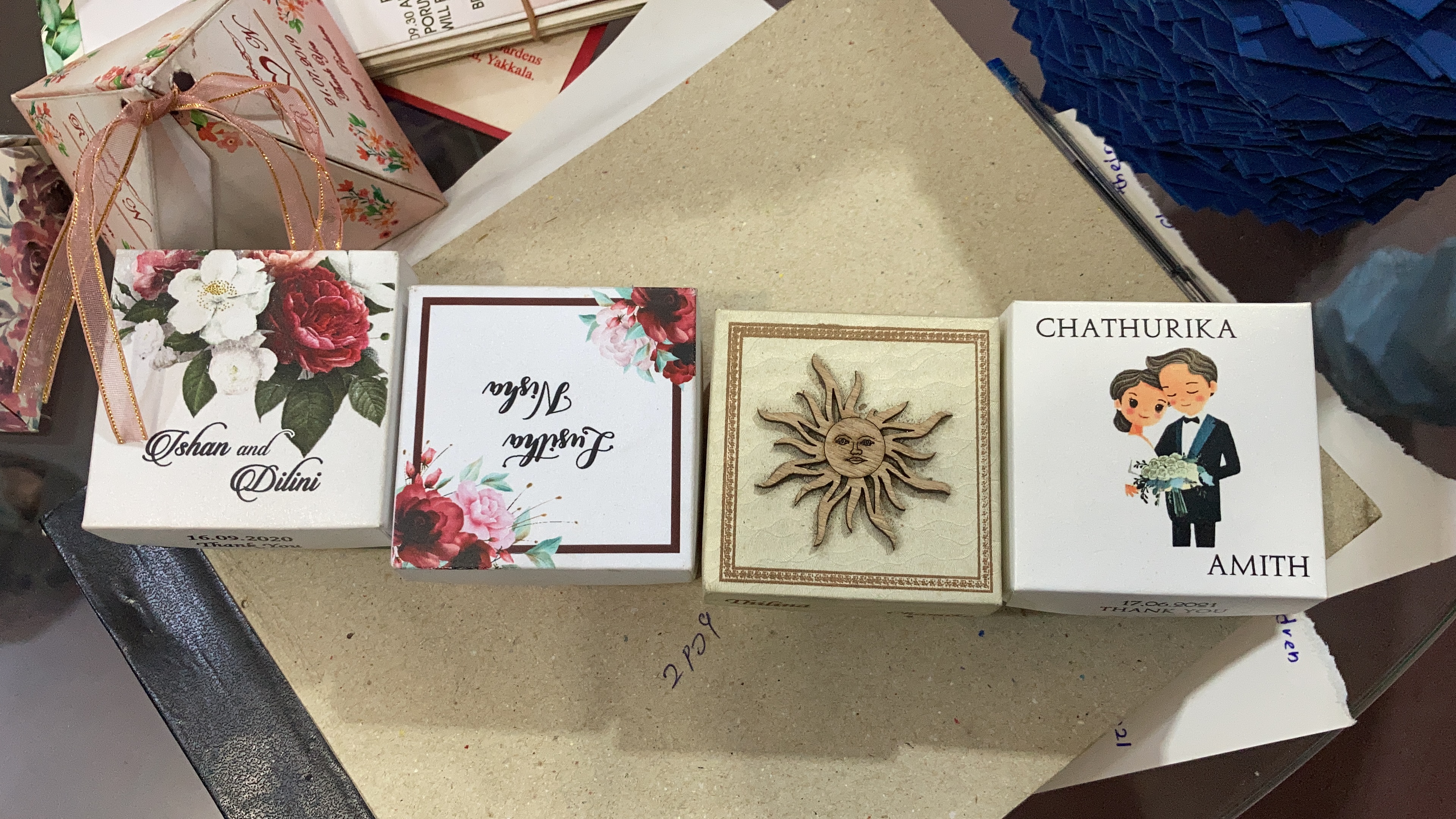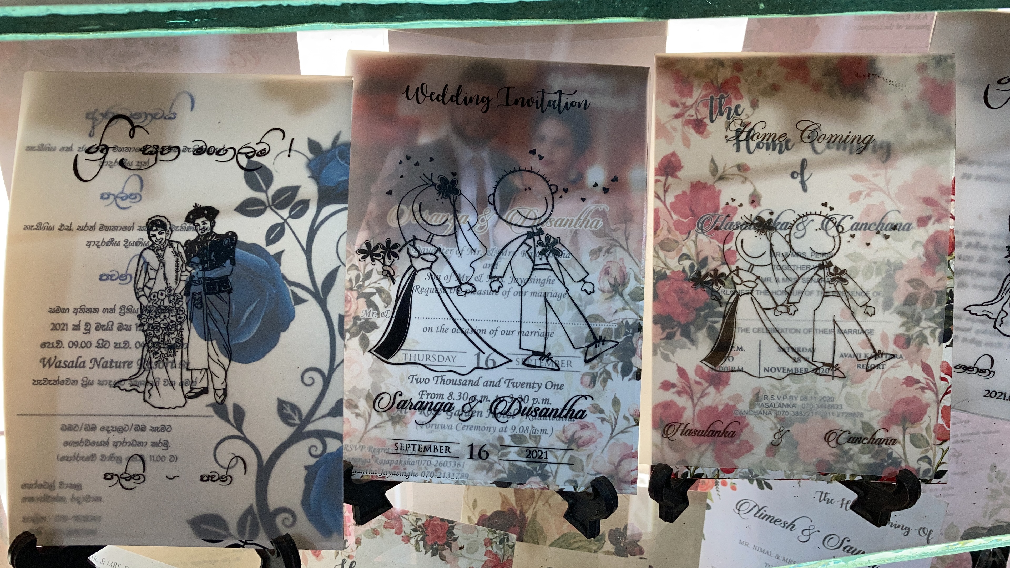 යලුවෙක්ගෙ මර්ගෙන් තමයි වෙඩින් කාඩ් කඩේ ඇරගන්න පුලුවන් උනේ. අපිට පැයක් ගියා කඩ් එකක් තොරගන්න.ඊට පස්සෙ ආයෙත් වැඩ බිමට අවා. මොකුත් කන්නනම් අවස්ථාවක් ලබුනෙනම් නෑ...