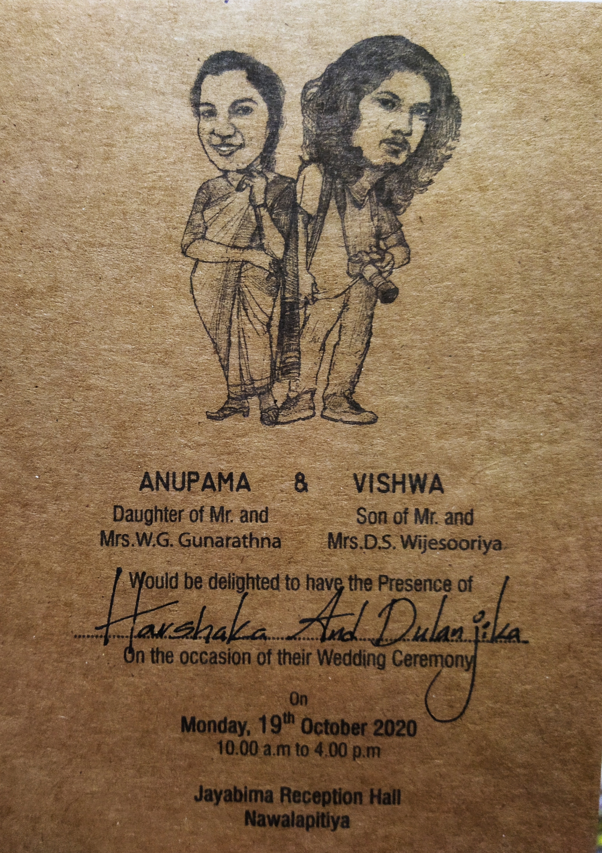 Mamath giyane oya wedding card thoranna kotuwe.. ammo e kadawal walata giyaama pissu hedenawa.. lassana lassana card..thoraganna therenne. Anthime mage husbandge yaluwek api dennawa chithrayak edala dunna. Meka thamai ape card 1.