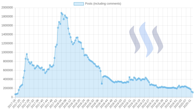 That's a dramatic drop in activity even with various people generating junk posts to milk rewards as they power down. The actions of Steemit and their puppet witnesses and driving people away. They could not even come up with an idea on their second day of 100 posts of ways to improve Steem after the first post just announcing that they were doing it. It's sad to eee the decline what could have been great. At least we have somewhere else to go.
