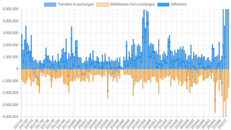 | Date | Transfers to exchanges | Withdrawals from exchanges | Difference |