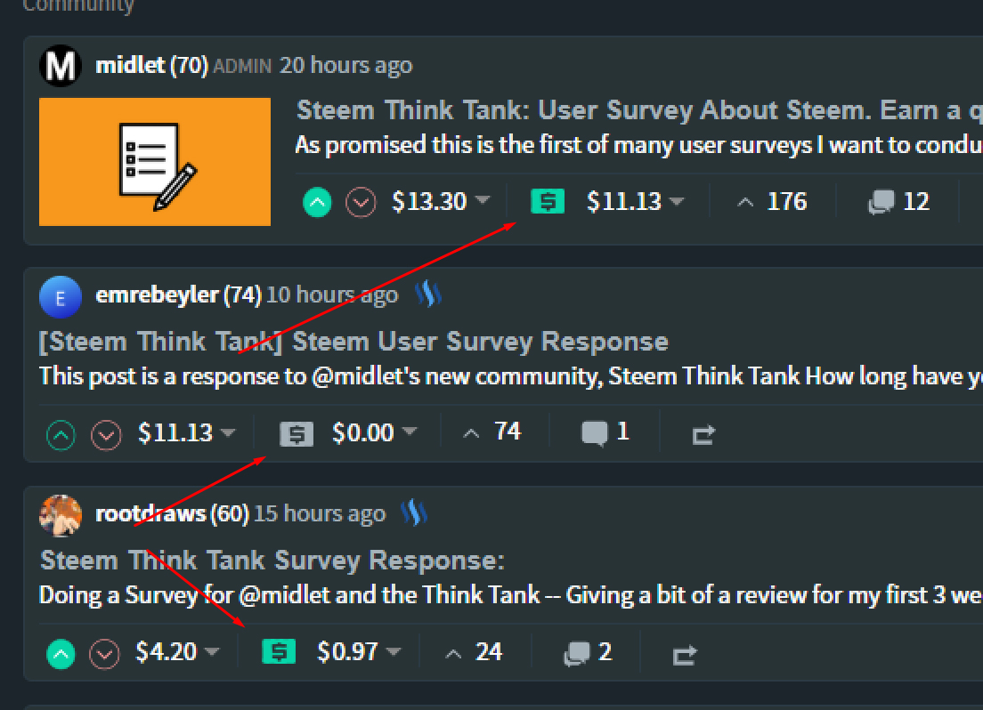 If I wanted to offer around the same reward with upvotes, I'd have to be a whale. I'd have to have hundreds of thousands of Steem, or I can buy about $13 worth of Steem and pay people via a direct transfer. As a user, I'd like it to be clearly evident, as soon as you land on this communities page, that all these participants have been paid, by me, without the necessity of leaving this page or even understanding much about Steem. I'd like to be able to COMMUNICATE with my transfers in the same way that I communicate with my upvotes.