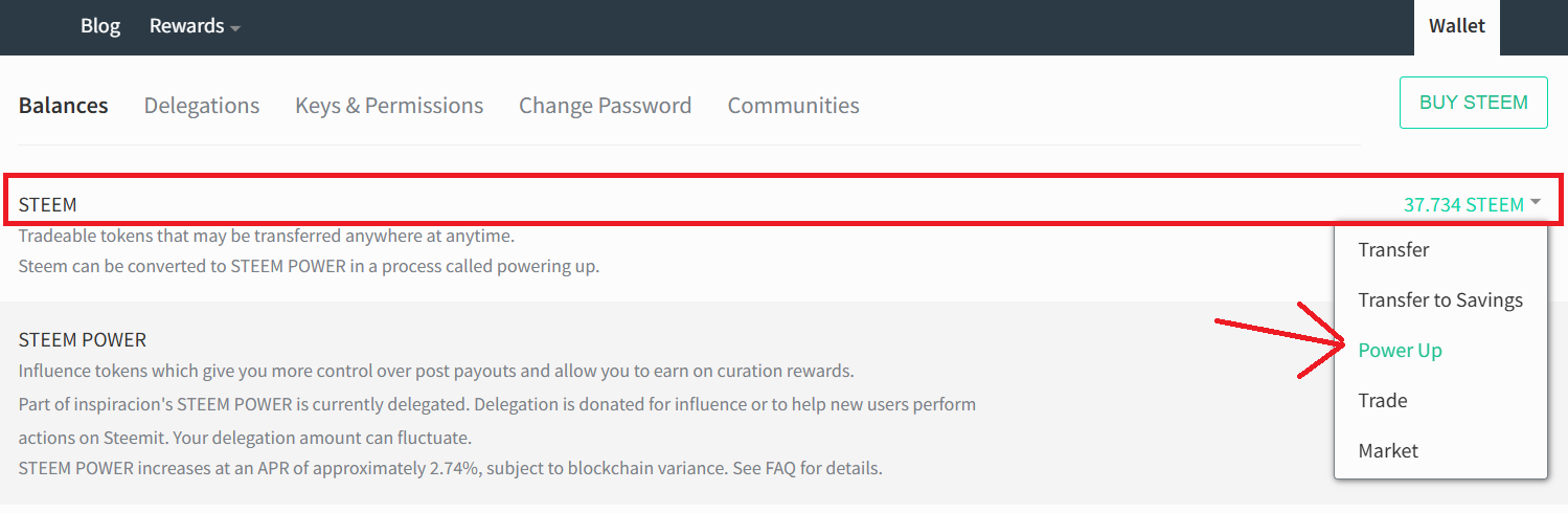 Lo primero que debemos hacer es ir a la billetera a la opción de Steem.