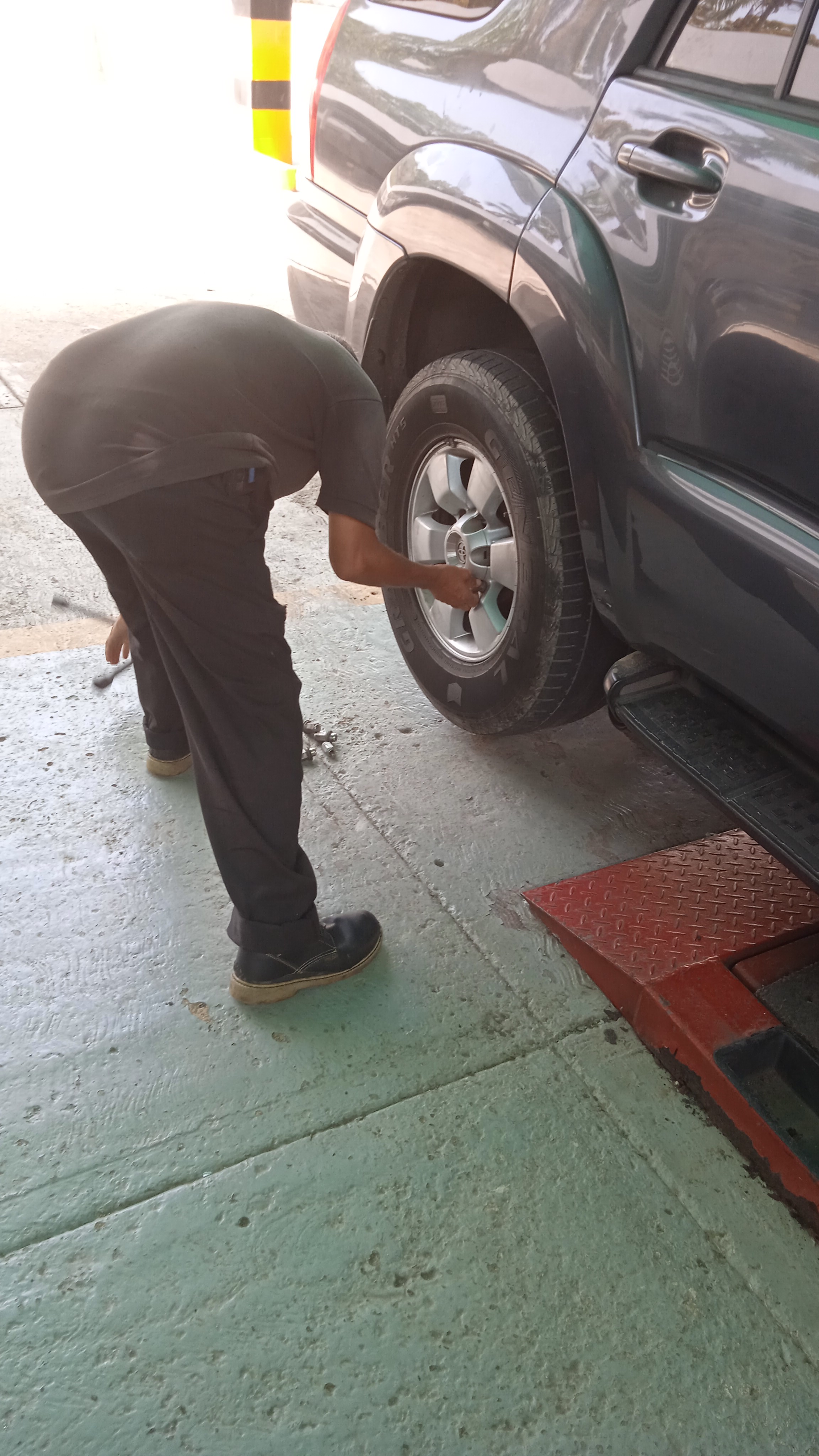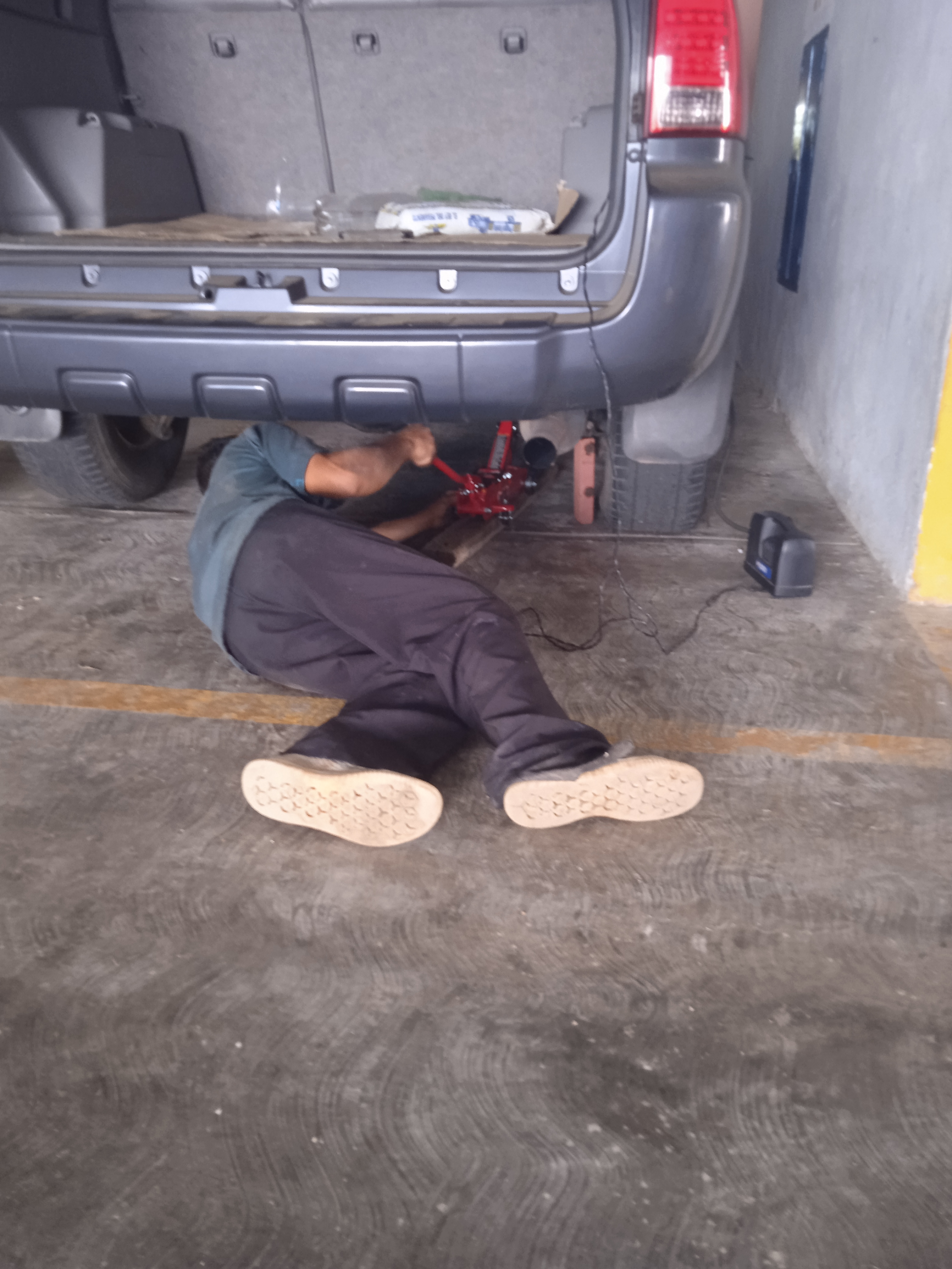 Después de terminar con las plantas me dí un baño y me arregle para salir, cuando bajamos al estacionamiento estaba un neumático espichado,llamamos a mi esposo para que nos ayudará nos lo lleno , termino de chequear todo y salimos.