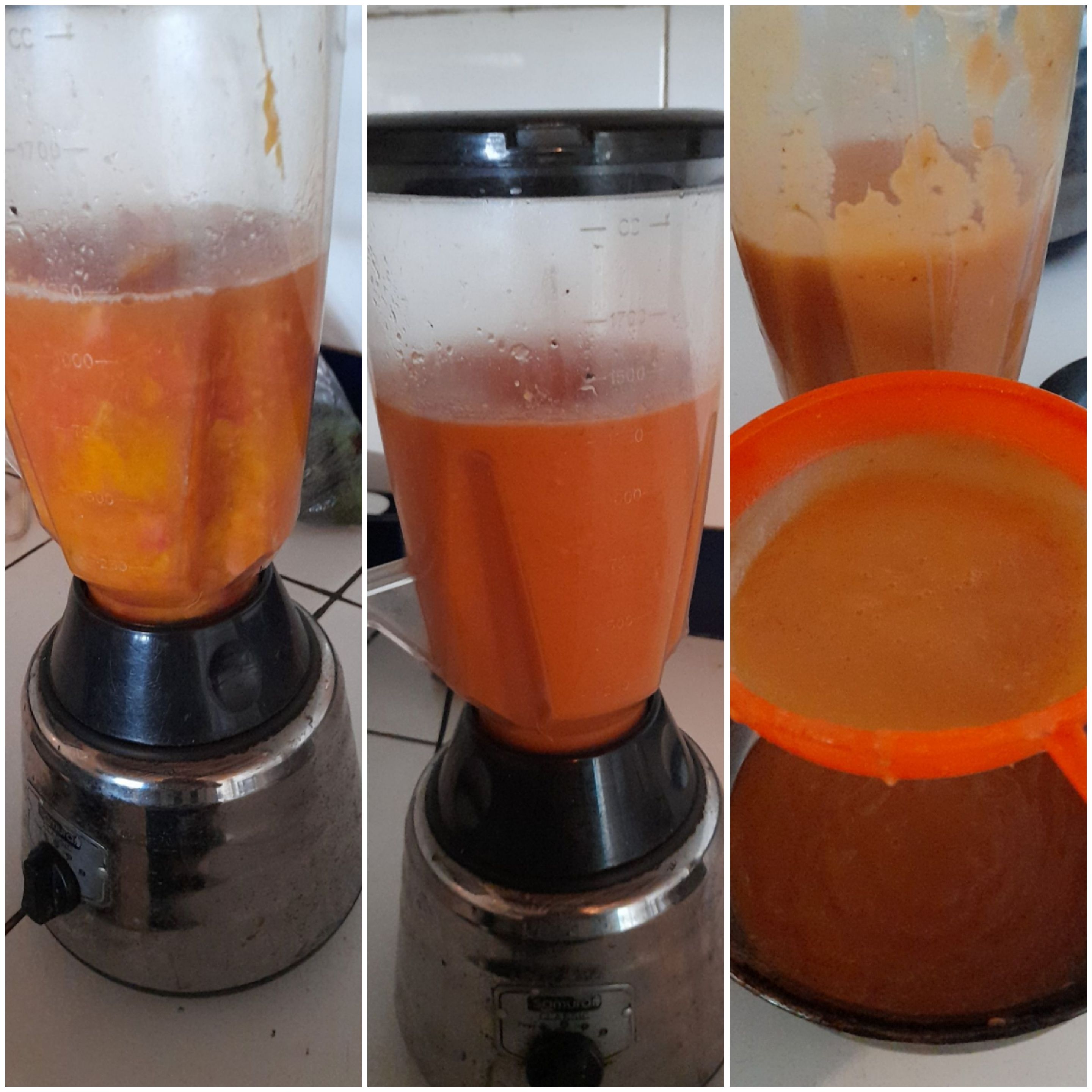 Una vez pasado los 5 min se apaga la cocina y se deja enfriar y se procede a licuar todas las frutas, luego se tamiza para eliminar las semillas de la guayaba